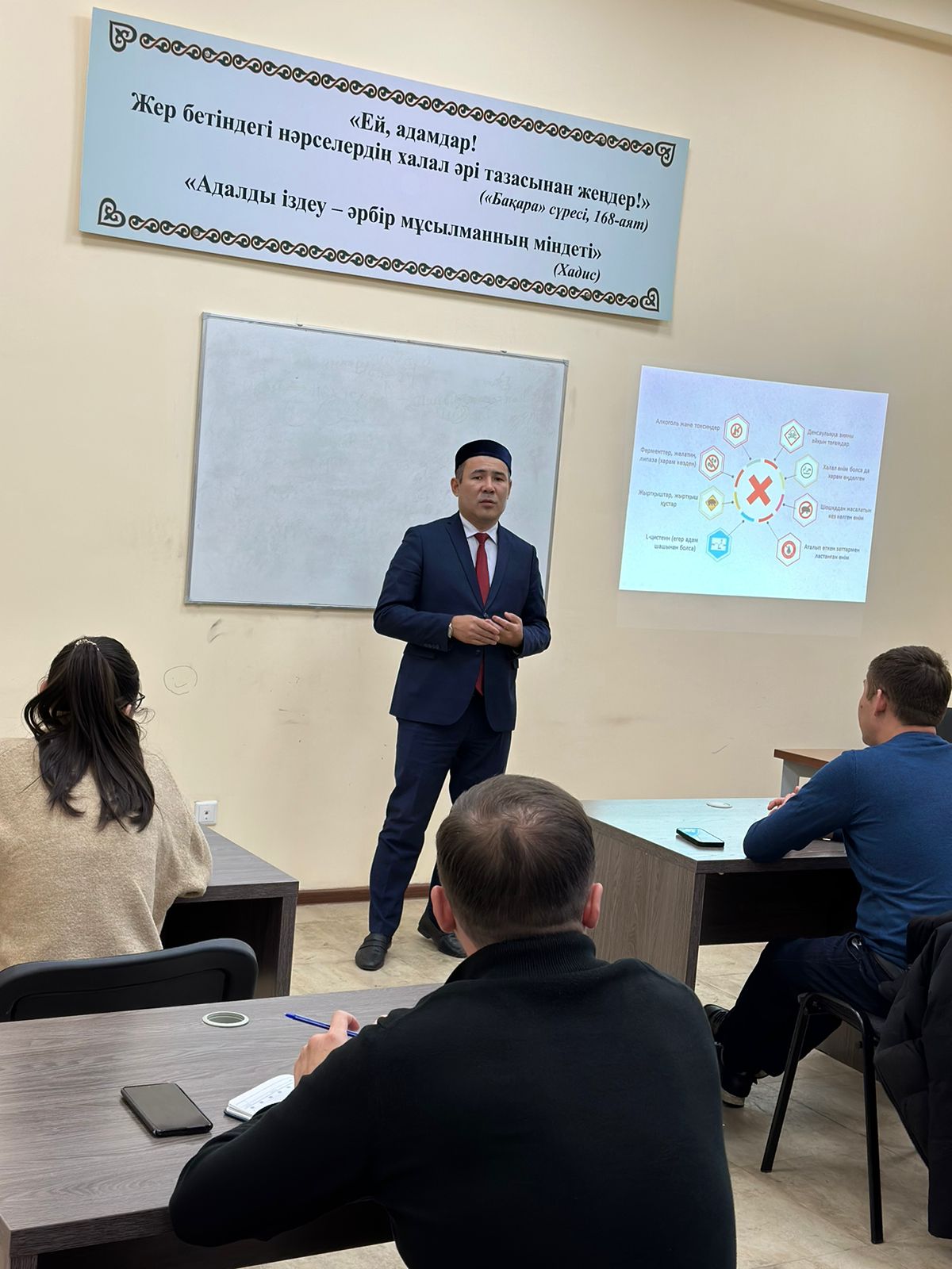 Оқыту барысында шариғатымыздағы халалдың орны мен маңызы жөнінде түсіндірген Айбек Асқарбекұлы: «Алла Тағала қасиетті Құран Кәрімде жер бетіндегі халал мен харам нәрселердің ара жігін ажыратып көрсеткен. Себебі, халал – ел экономикасы мен Ислам әлемі үшін маңызды бағыттардың бірі десек қателеспейміз. Әлемде халал өнімге сұраныс күн санап артып келеді. Халықаралық экономикалық қатынастарды нығайту, отандық халал индустриясын дамыту мақсатында «Халал Даму» әрдайым кәсіпкерлерге қолдау көрсетеді. Сіз бен біздің бірлескен еңбегіміз сауда нарығындағы жаңа бағыттарға жол ашады деп сенеміз»», – деген Айбек Асқарбекұлы халал саласындағы өзекті мәселерді қозғап, қатысушылар сұрақтарына жауап берді. Ал, технолог маман халал өнімдер технологиясы мен стандарт талаптары, зертханалық тексерістің маңыздылығы, тағамдық қоспалардың өндірісі жөнінде баяндады.