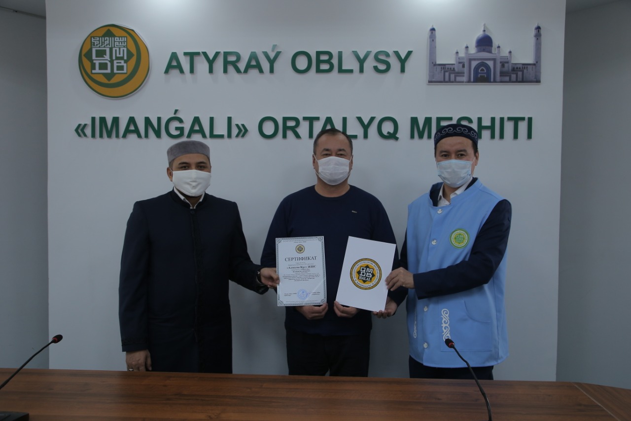 **Атырау облысы Махамбет ауданында орналасқан "Алмалы Құс" фабрикасы "ҚМДБ Халал" сертификатын алды.** "Иманғали" мешітінде Облыс имамы Алтынбек Ұтысханұлы мен "Халал Даму" мекемесінің аймақтық өкілі Қайрат Аманжолұлы "Алмалы Құс" мекемесі өкіліне сертификат табыс етілді. "Алмалы Құс" фабрикасы 2013 жылдан бері жұмыртқа өндіріп келеді. "Халал Даму" мекемесінің мамандары жүргізген тексеру нәтижесінде аталмыш мекеме 3:2016 "Халал" өнімдерді өндіруге, дайындауға, өңдеуге, сақтауға, тасымалдауға және сатуға қоятын жалпы талаптар стандартына сай екендігін анықтады. Сертификат 04.03.2022 жылға дейін жарамды.