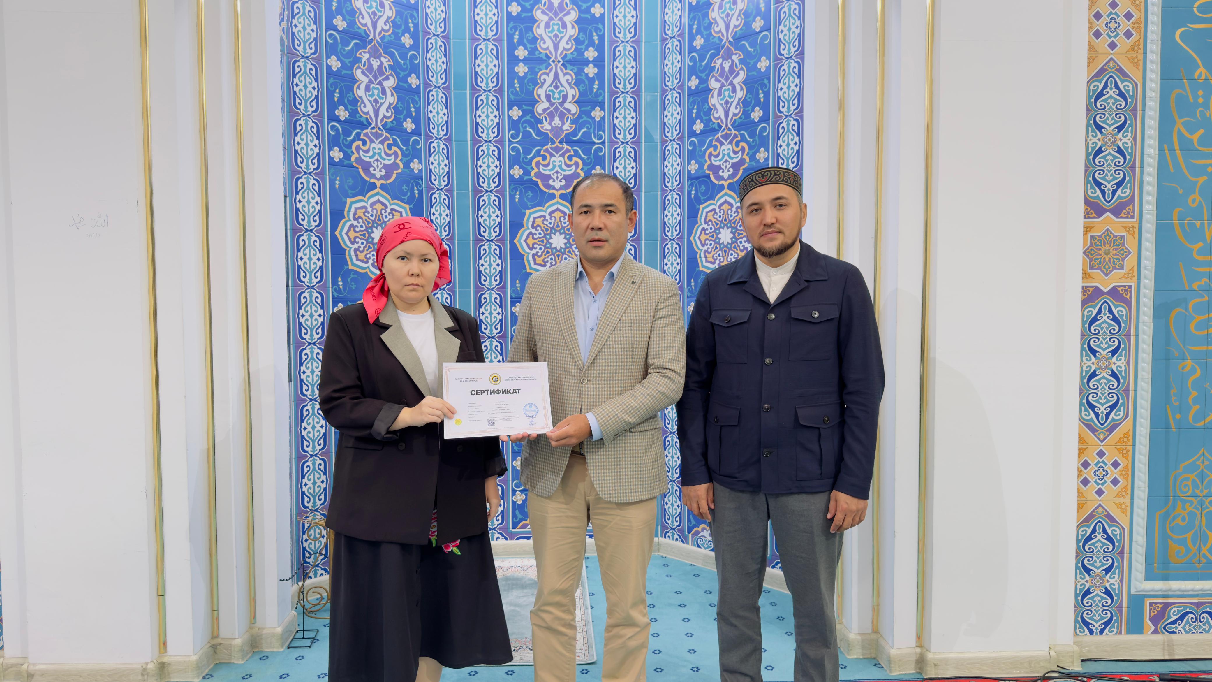 «Халал Даму» директоры Айбек Асқарбекұлы мен Атырау облысының бас имамы Алтынбек Ұтысхан өңірдегі кәсіпорындарға «QMDB Halal» сертификатын табыстады. Атап айтқанда, «Аманкелді» кәсіпорнының балық өнімдері, «Alma pie» және «Iris» дәмханалары халал стандарты талаптарына сай деп танылды.