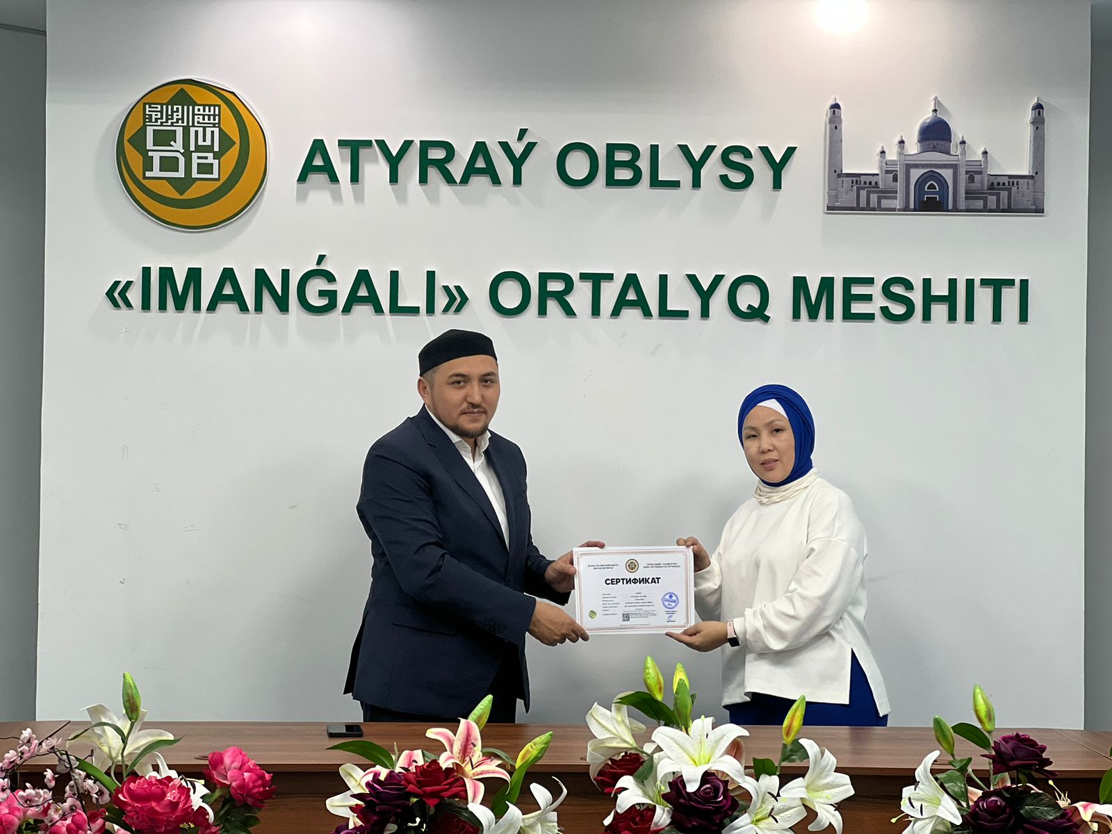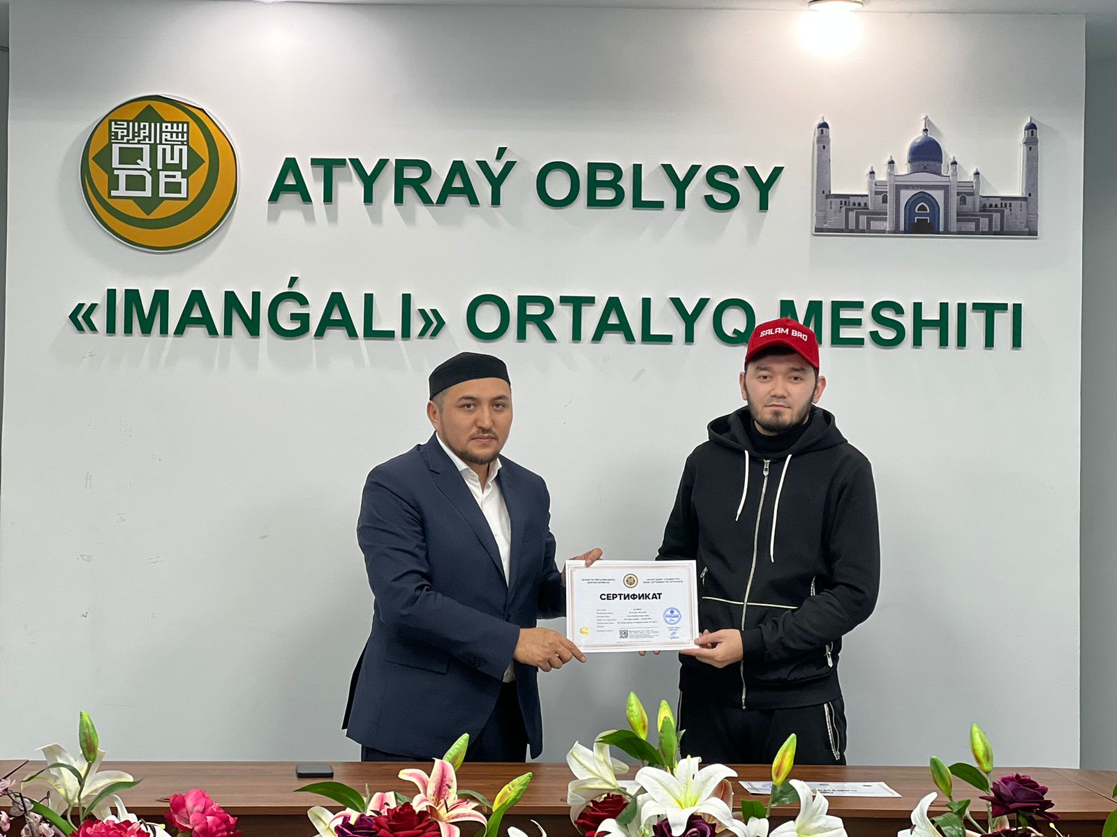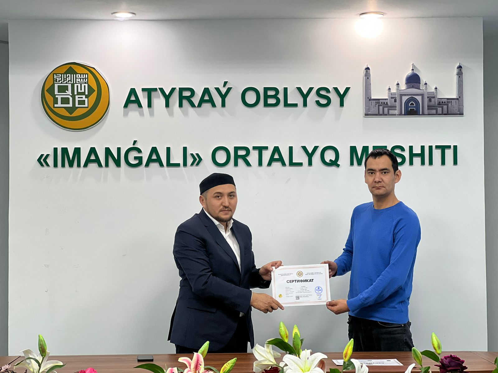 Атырау облысының өкіл имамы Алтынбек Ұтысханұлы «SALAM BRO», «Zauresh tattileri» және «Shoq doner» кәспорындарына сертификат табыстады