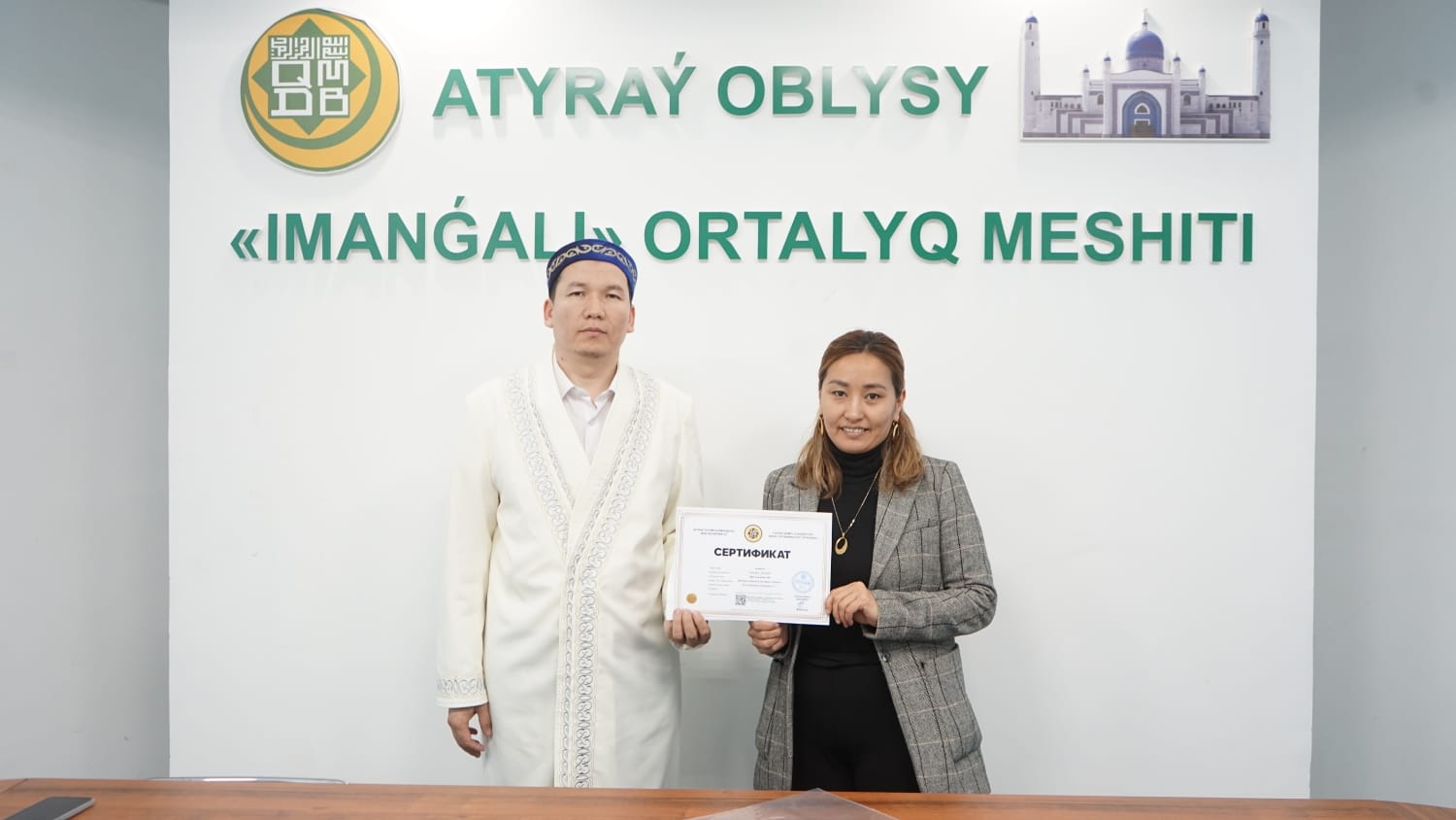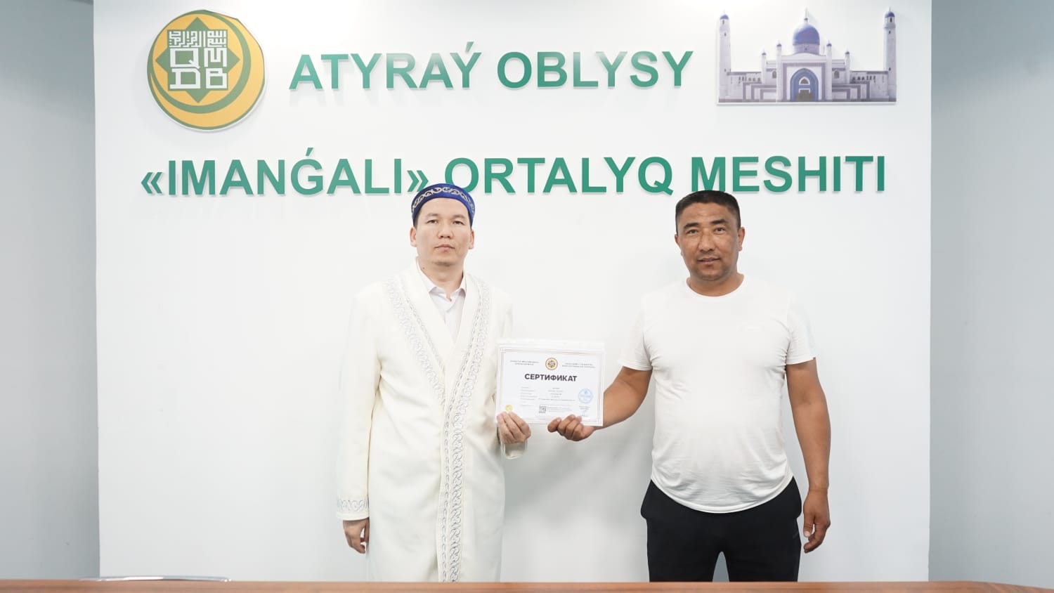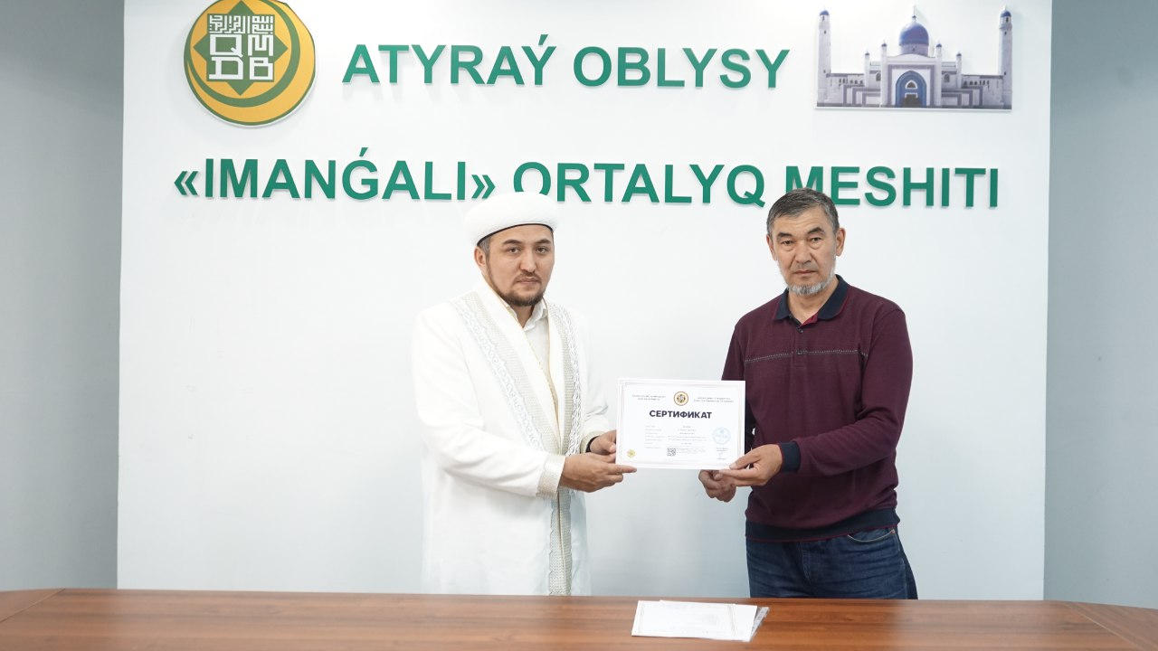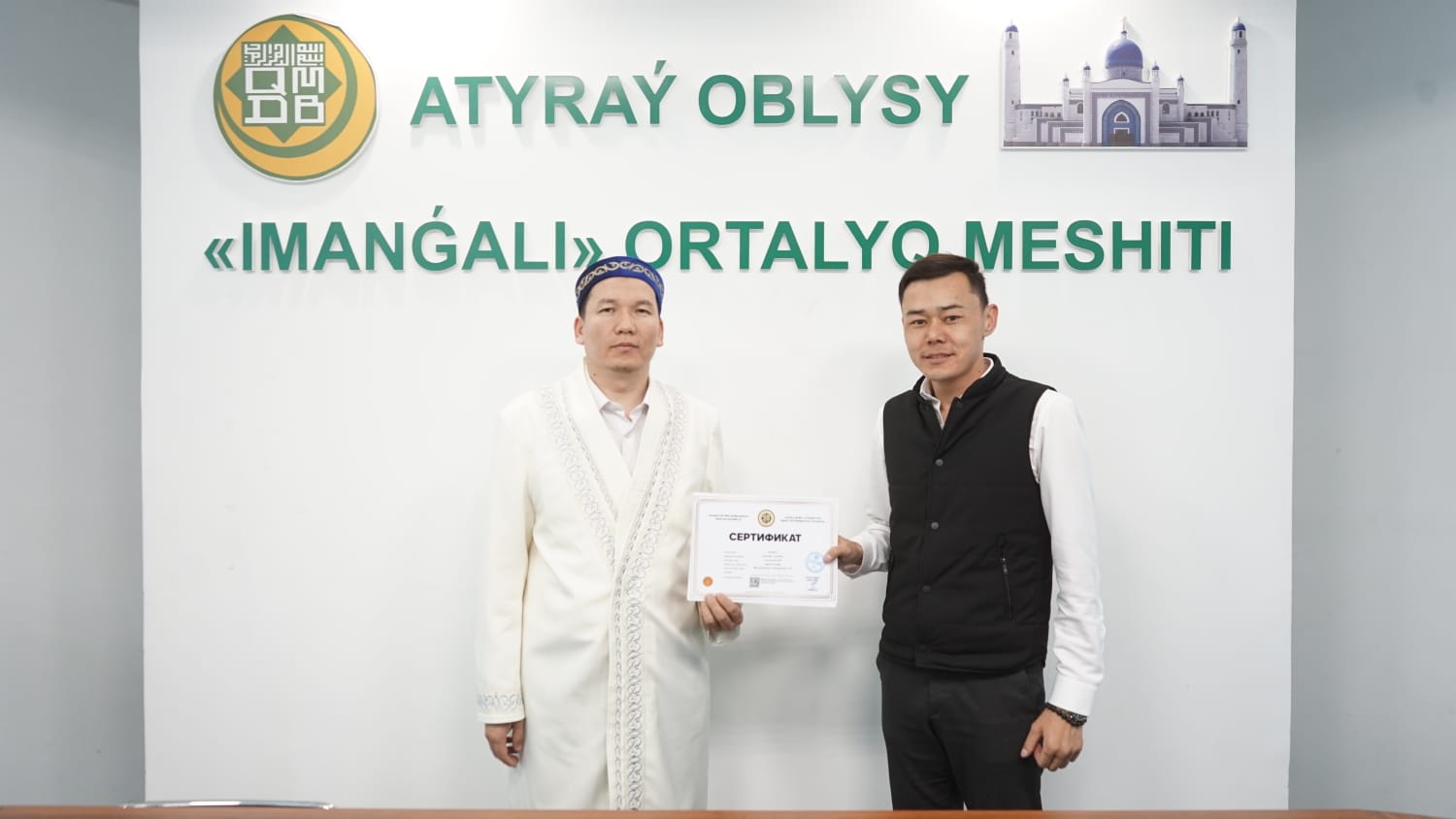 Атырау облысының бас имамы Алтынбек Ұтысханұлы мен «Иманғали» мешітінің наиб имамы Арман Исаев өңірдегі ЖК «Sogym Food» сауда белгісімен шығарылатын жартылай фабрикат өнімдері, «Lanzhou Атырау» дәмханасы, ЖК «Енжилов» «Дастан » ет дүкені, ЖК «Татишев Д.А» «Angel-in-us-coffee» және «Масалимова» «Afsona» қоғамдық тамақтану орындарына «QMDB Halal» сертификатын табыстады. Сонымен қатар, кәсіпкерлерге халал турасында оқу-семинары жүргізілді.