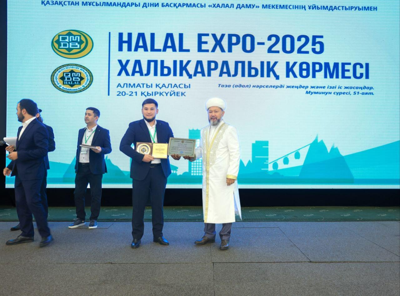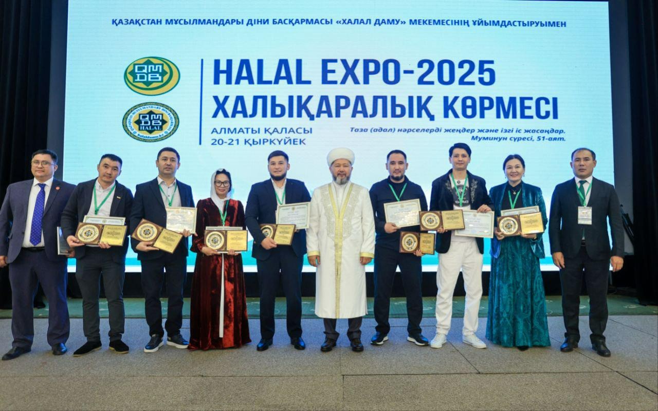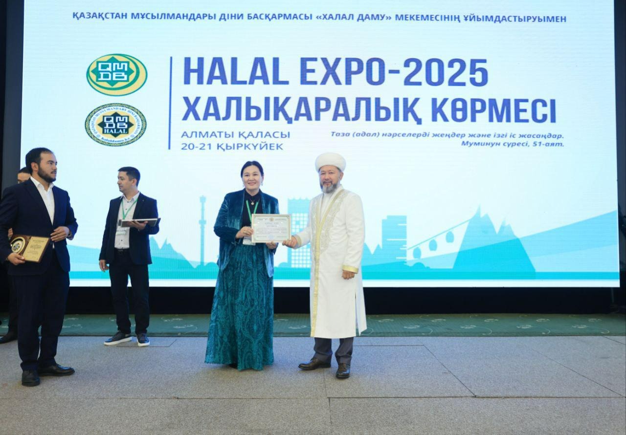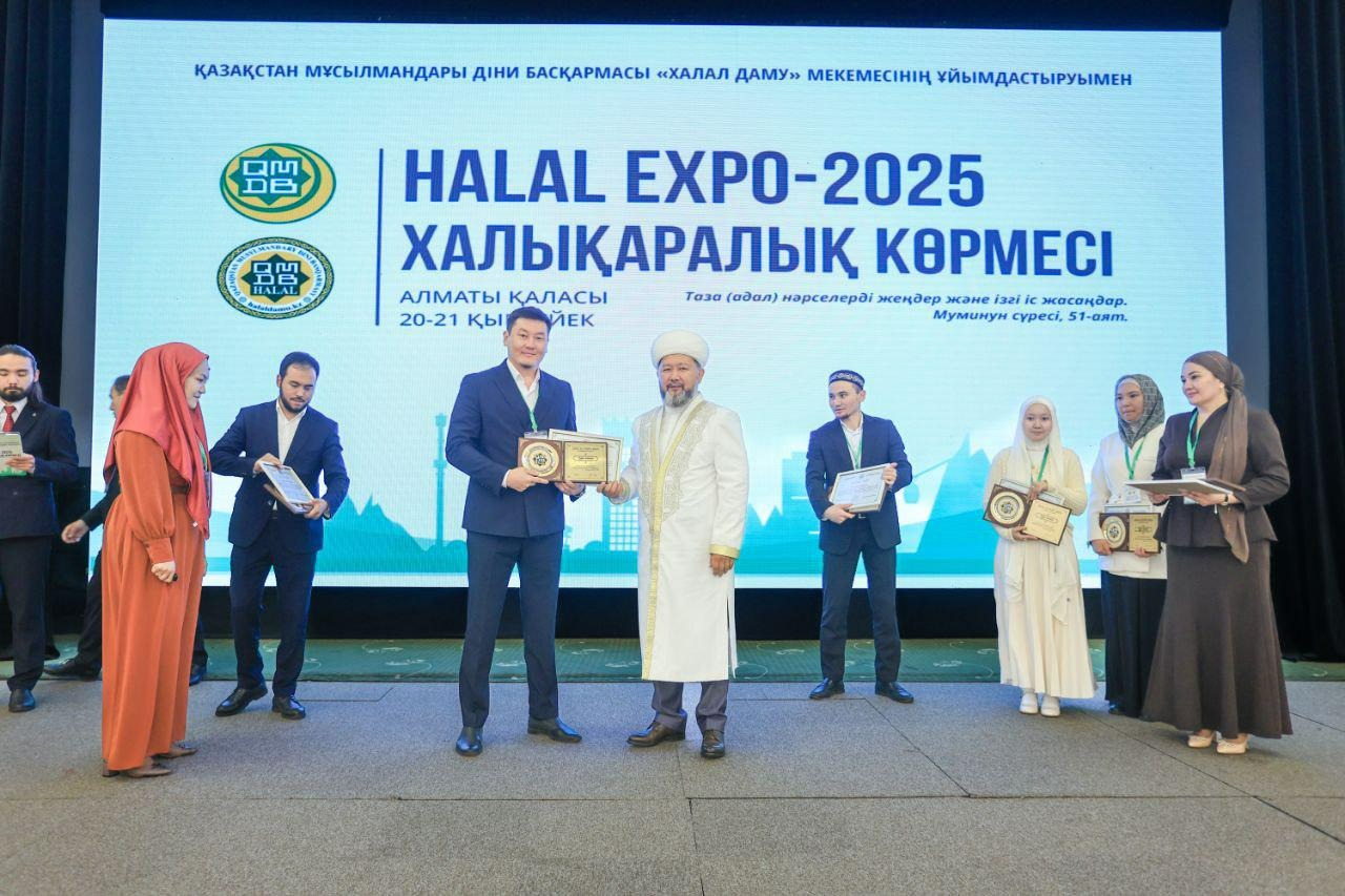 Қазақстан мұсылмандары діни басқармасының төрағасы, Бас мүфти Наурызбай қажы Тағанұлы Алматыда өтіп жатқан «HALAL EXPO-2025» халықаралық көрмесінің ашылу рәсімінде үздік халал кәсіпорындар мен мамандарды марапаттады.