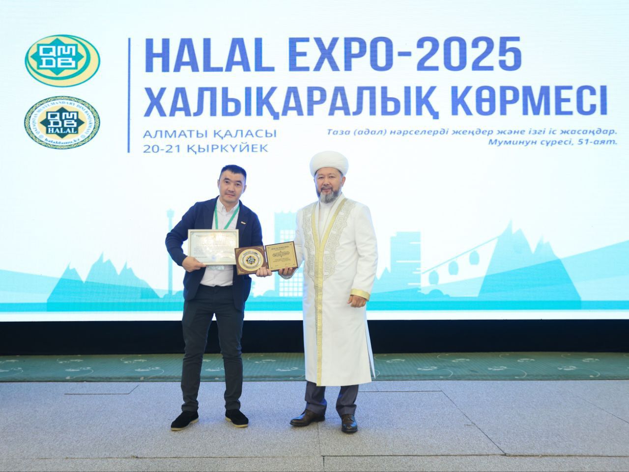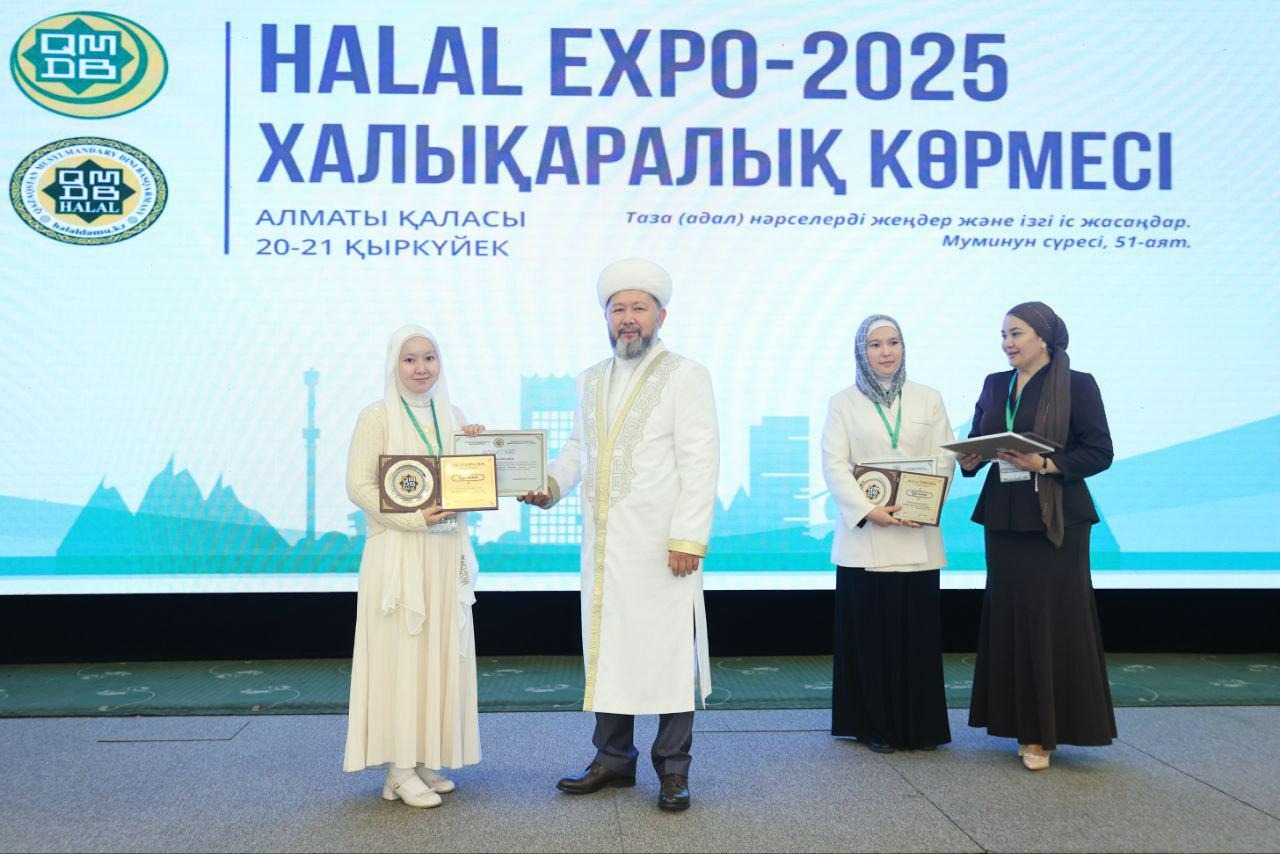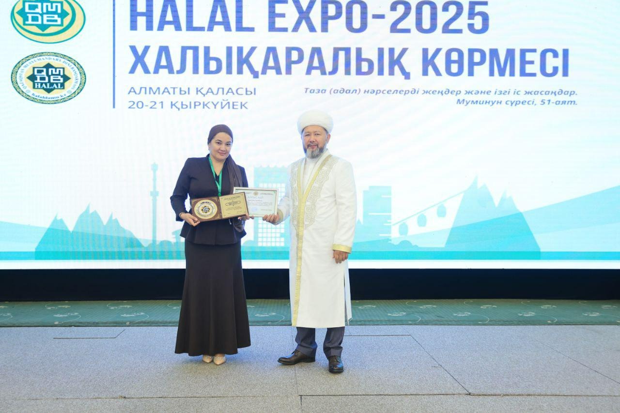 Қазақстан мұсылмандары діни басқармасының төрағасы, Бас мүфти Наурызбай қажы Тағанұлы Алматыда өтіп жатқан «HALAL EXPO-2025» халықаралық көрмесінің ашылу рәсімінде үздік халал кәсіпорындар мен мамандарды марапаттады.