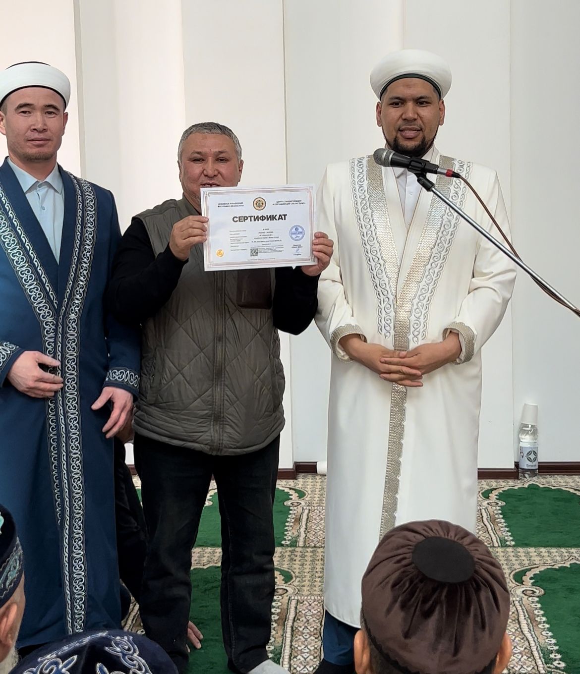 БҚО бойынша Бас имамы Алибаев Самат Қанатқалиұлы және «Халал Дамудың» жергілікті өкілі Асхат Асылбеков «Динара тәттілері» көндитерлік өнімдеріне «QMDB Halal» сертификатын табыстады.