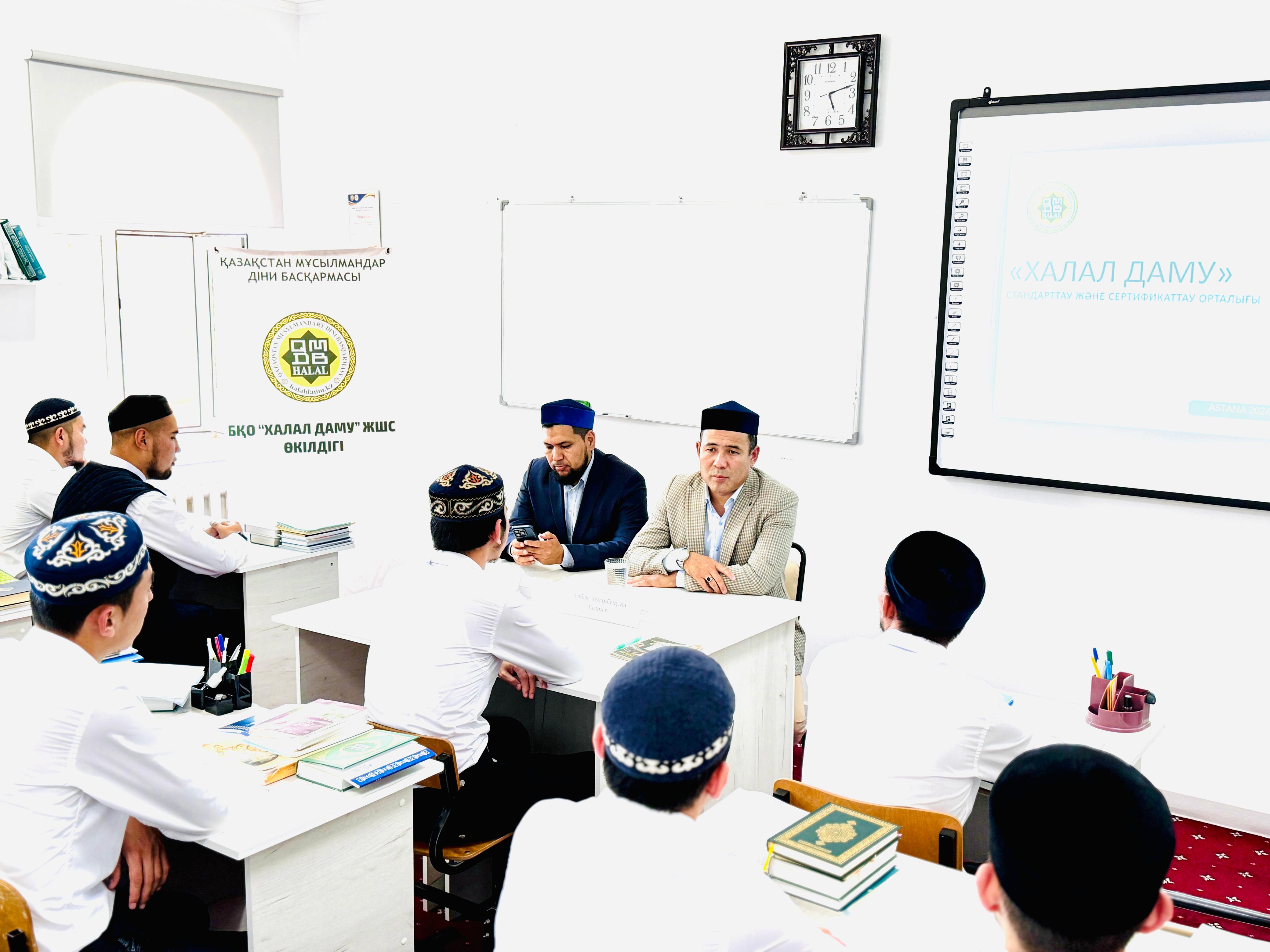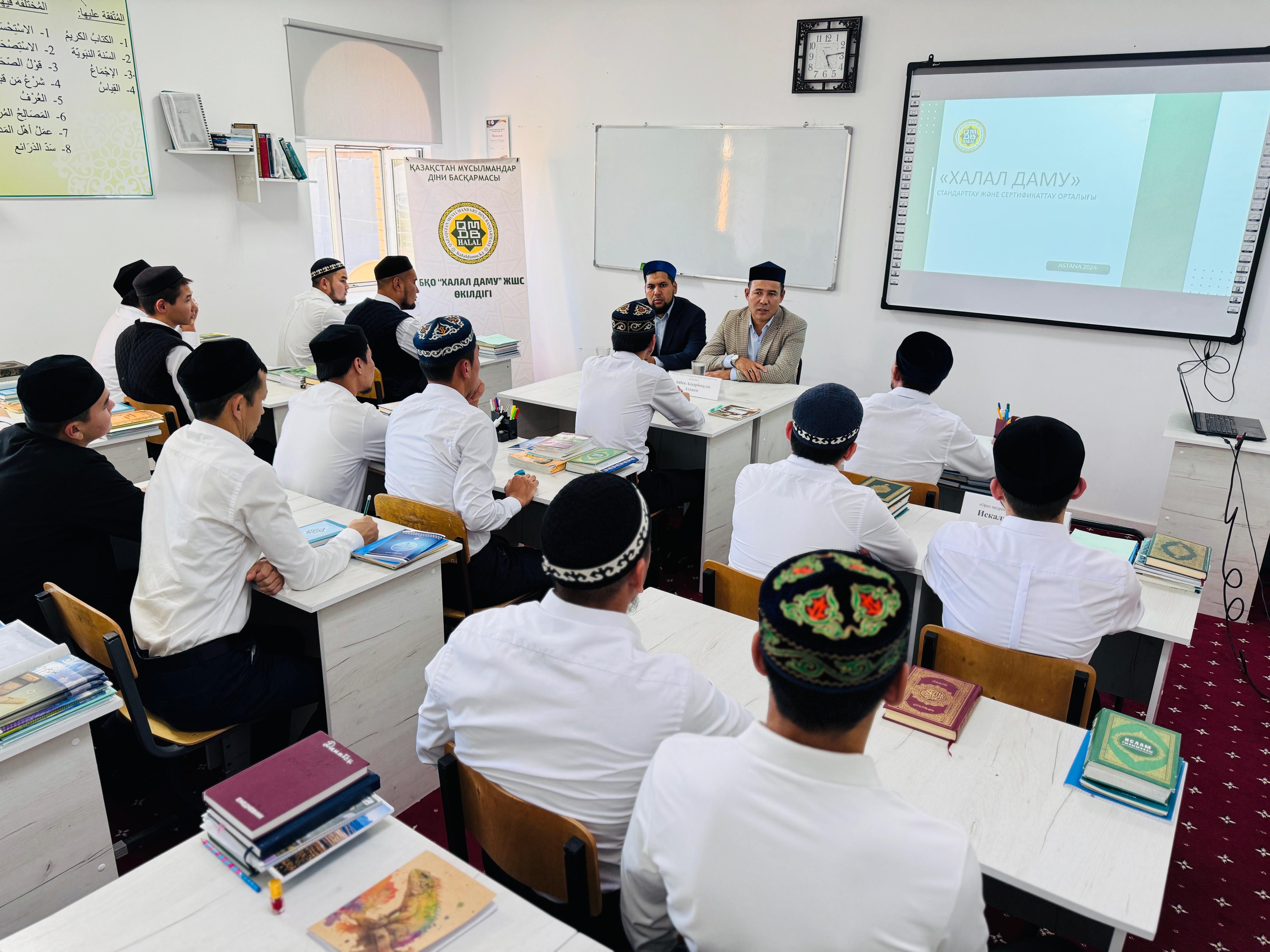 «Білімді жастар — біздің болашағымыз, асыл дініміздің жолында қызмет қылатын ғалымдарымыз. Өскелең ұрпақтың діни білім алып қана қоймай, әлемдік тәжірибеге негізделген халал стандарты, технологиясы, халал сертификаттау мен стандарттаудың талап-тәртібі, ережелері, халал өнім өндіру ерекшеліктері мен айырмашылықтары жөнінде ақпараты болғаны маңызды», — деген Айбек Асқарбекұлы шәкірттерге халал турасында кеңінен түсіндіріп, шариғат талабы халал жөнінде баяндады. Сонымен қатар, семинар соңында шәкірттер тарапынан қойылған сұрақтарға жауап беріліп, халал өнімді қолдануға, халалды кеінен насихаттауға шақырды.