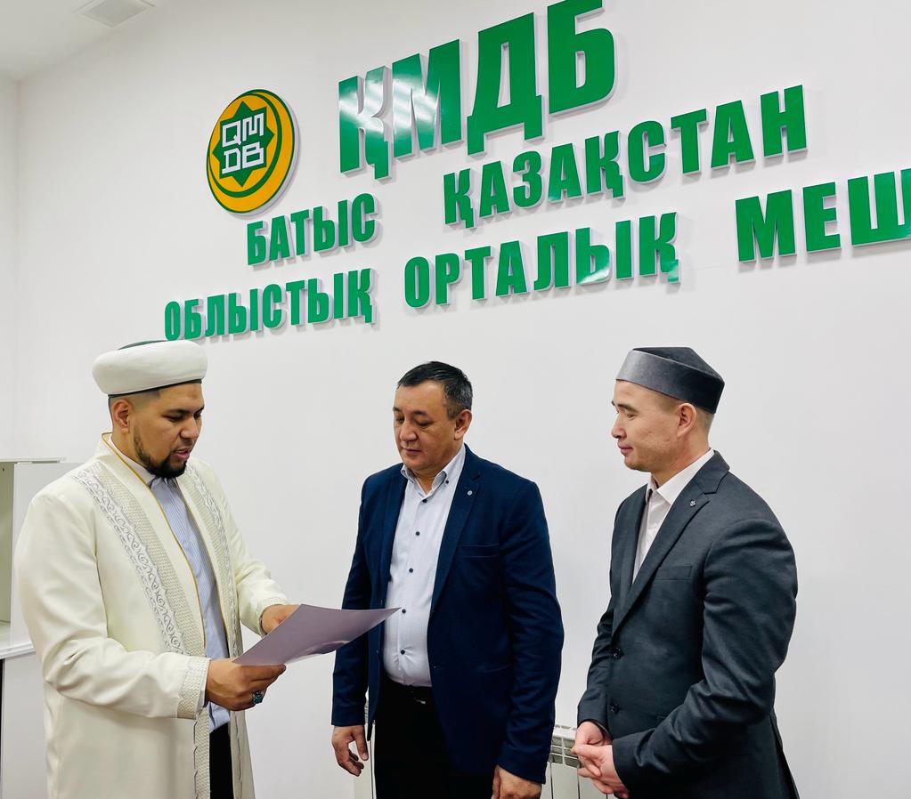 ҚМДБ-ның БҚО бойынша Бас имамы Алибаев Самат Қанатқалиұлы «Жайық ет» ЖШС кәсіпорнына сертификатын табыстады.