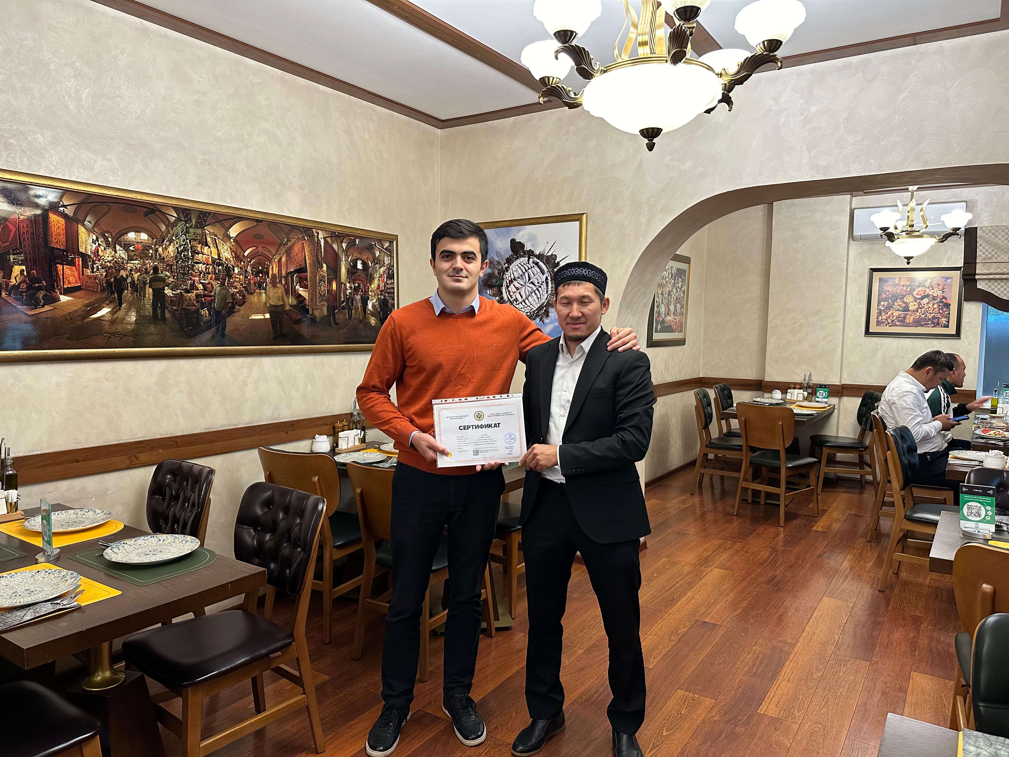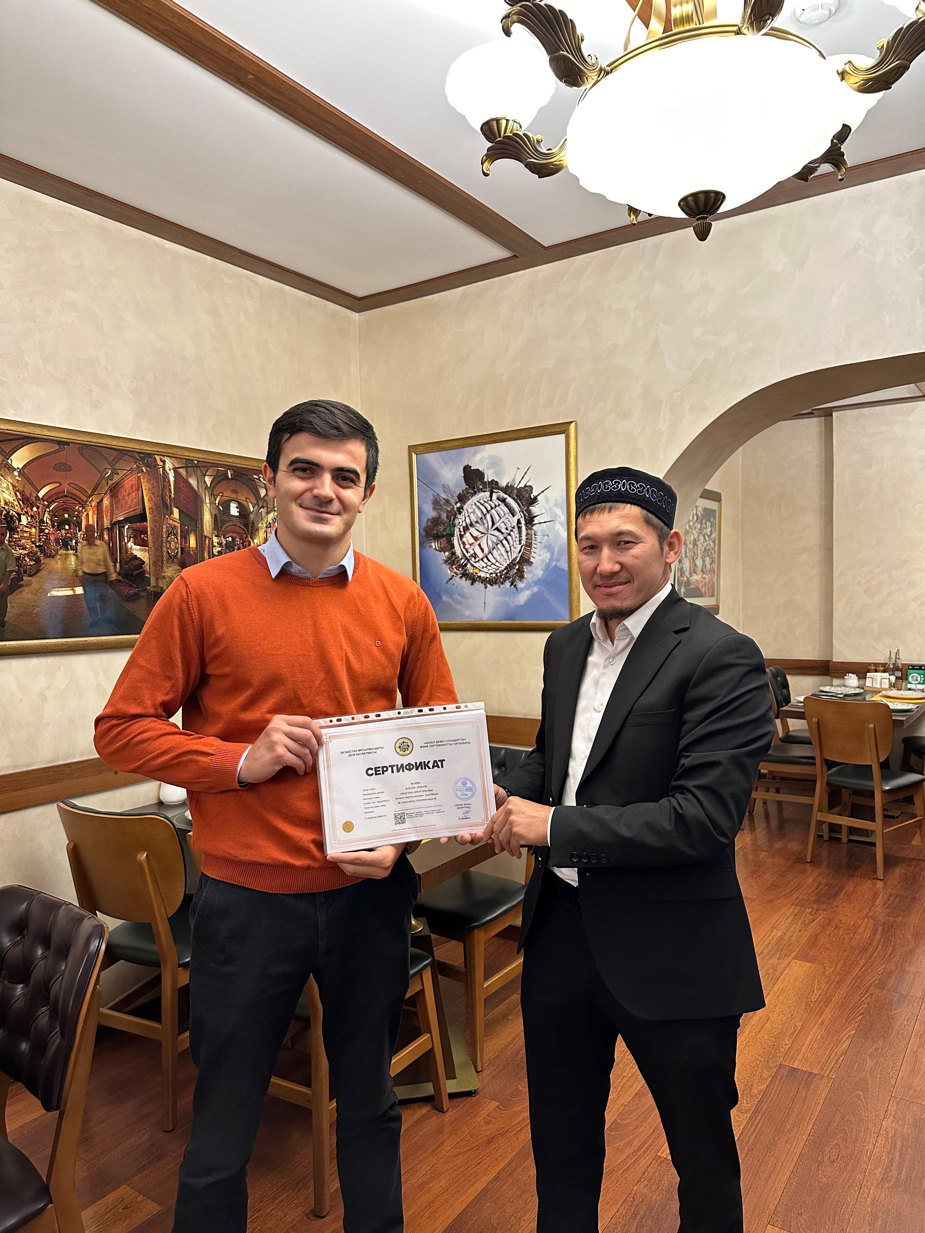 Алматы қаласында орналасқан «Cicek Mangal» дәмханасына берілген «QMDB Halal» сертификаты жаңартылды. Сертификатты халалдың Алматы қаласы бойынша жауапты өкілі Ерлан Тайлақов табыстады.