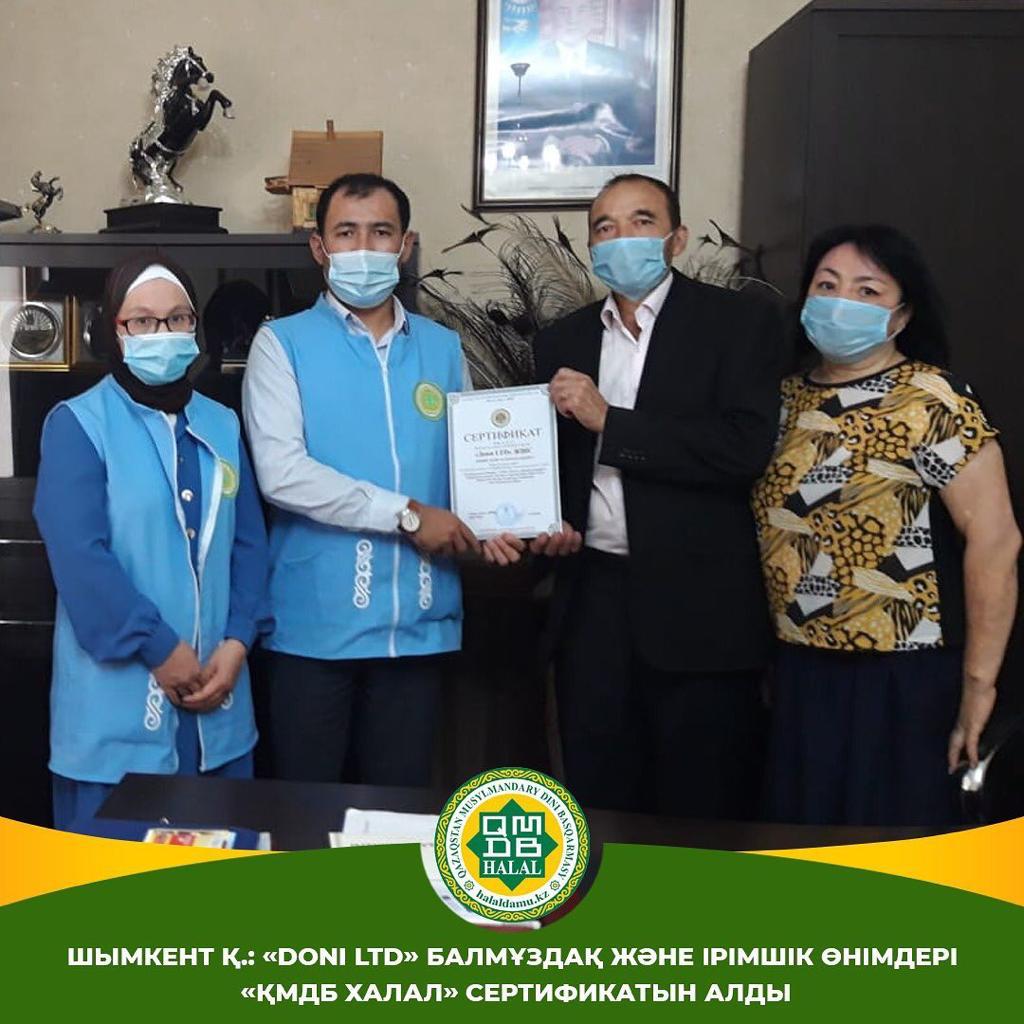 ***«ҚМДБ халал» стандартына сай балмұздақ өндіруші кәсіпорындар саны тағы да бір мекемен толықты.** Балмұздақ және ірімшік өнімдерін өндіруші «Doni LTD» кәсіпорыны «ҚМДБ халал» сертификатына ие болды. Шымкент қаласында іс-сапармен жүрген «Халал Даму» директоры Айбек Асқарбекұлы мен бас технолог Айжан Омарова, жергілікті инспектор-контролер Қазбек Сарыбаев өндіріс орнында аудит жұмыстарын жүргізіп, кәсіпорын жұмысының халал стандартқа толықтай сай екендігіне көз жеткізді. Өндіріс барысында қолданылатын негізгі шикізат пен тағамдық қоспалар түгелдей зертханалық тексерістен өткізілген. абораториялық тексеріс нәтижесі бойынша шариғатымызда тиым салынған қоспалар жоқ екендігі анықталды. «Doni LTD» балмұздақ және ірімшік өнімдері Нұр-Сұлтан, Алматы, Шымкент, Петропавл, Ақтөбе, Ақтау, Тараз, Түркістан, Қызылорда секілді ірі қалалар мен Шалқар, Арыс, Арал, Жаңатас, Шардара, Мақтарал елді-мекендеріне жеткізіледі. «Doni LTD» кәсіпорны «Халал өнімдерді өндіру, өңдеу, дайындау, сақтау, тасымалдау және сатуға қойылатын жалпы талаптар стандарты» бойынша сертификатталып, «ҚМДБ сертификаты» табысталғанлығын хабарлаймыз!* ⠀