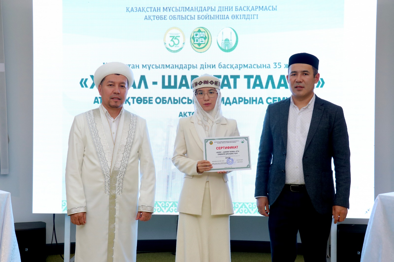 Айта кетсек, спикер қатысушыларға халал стандарттарының маңыздылығы, оларды сақтау жолдары және халал өнімдерге деген сұраныстың артуы туралы кеңінен түсіндірді. Бүгінгі таңда Ақтөбе өңірінде ҚМДБ халал сертификатын алған 50-ге жуық кәсіпорын бар. Семинар қортындысында қатысушыларға сертификат табысталды.