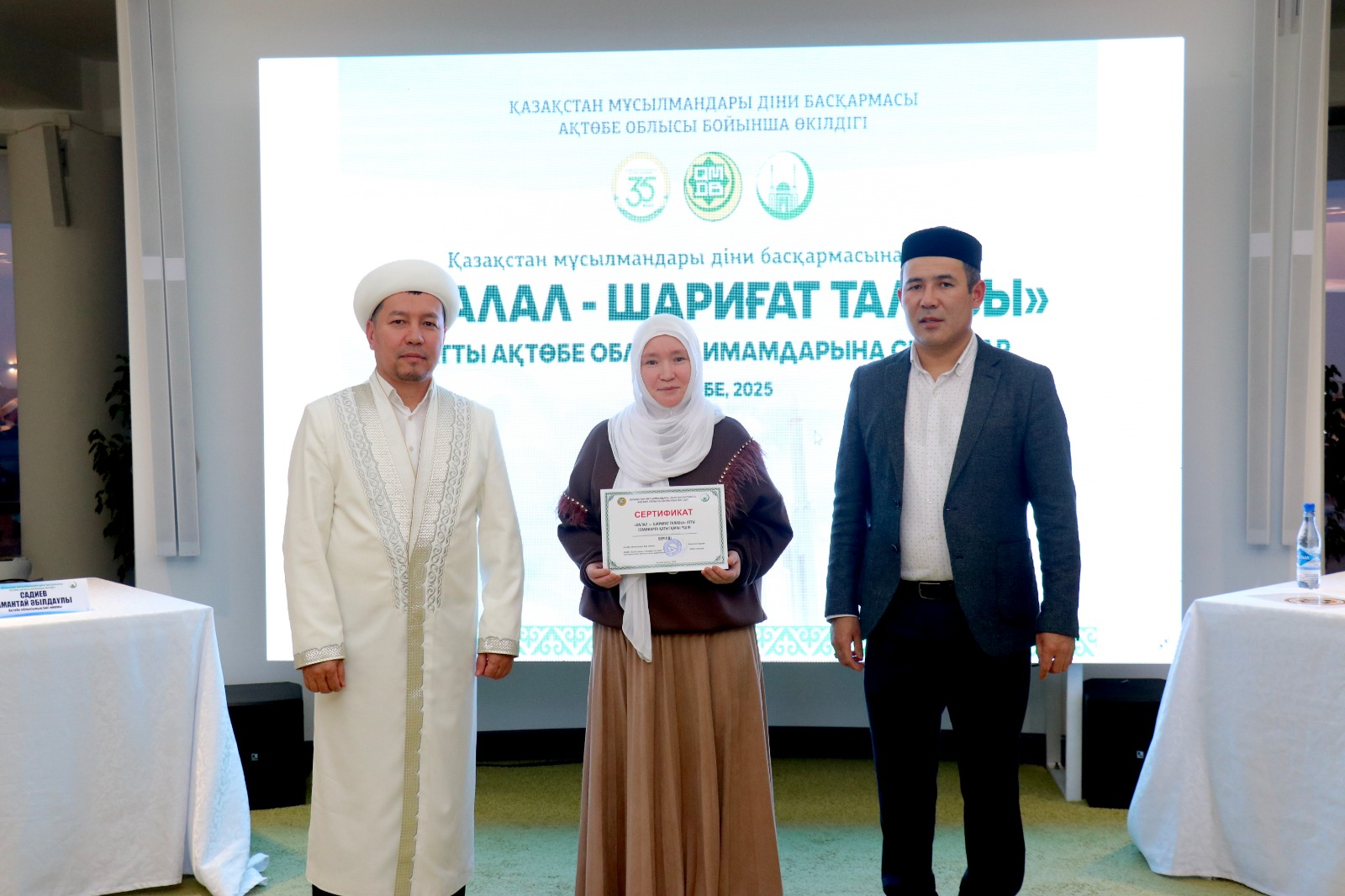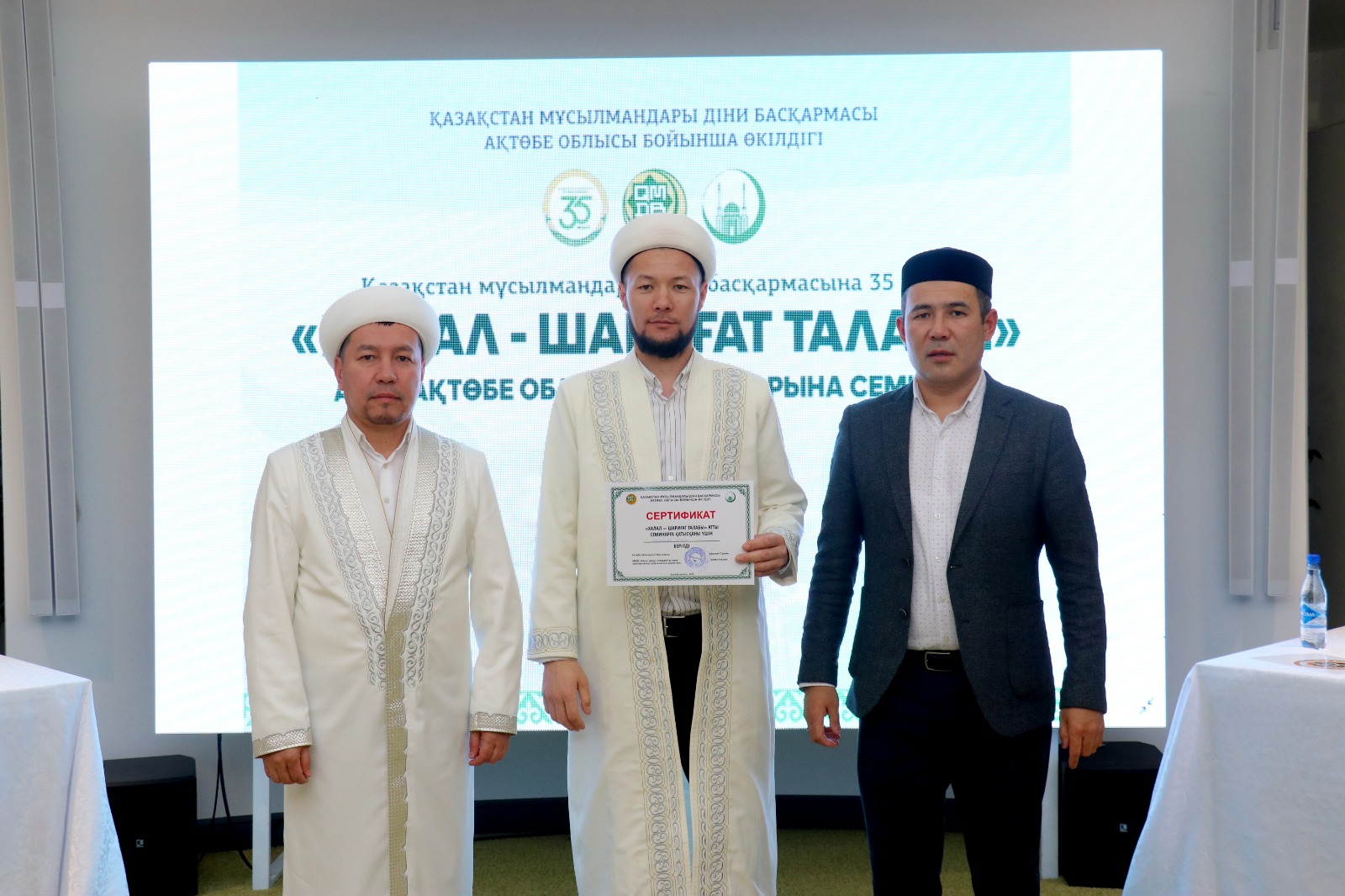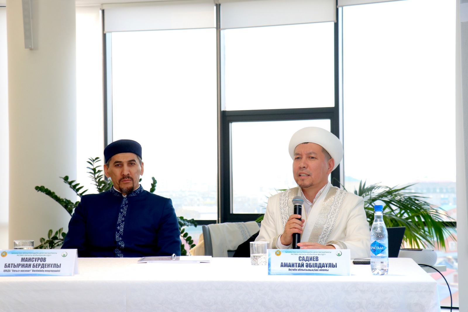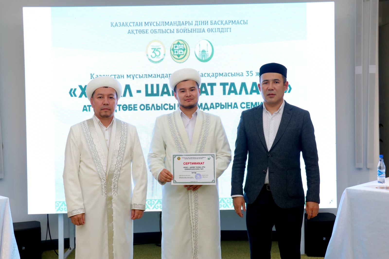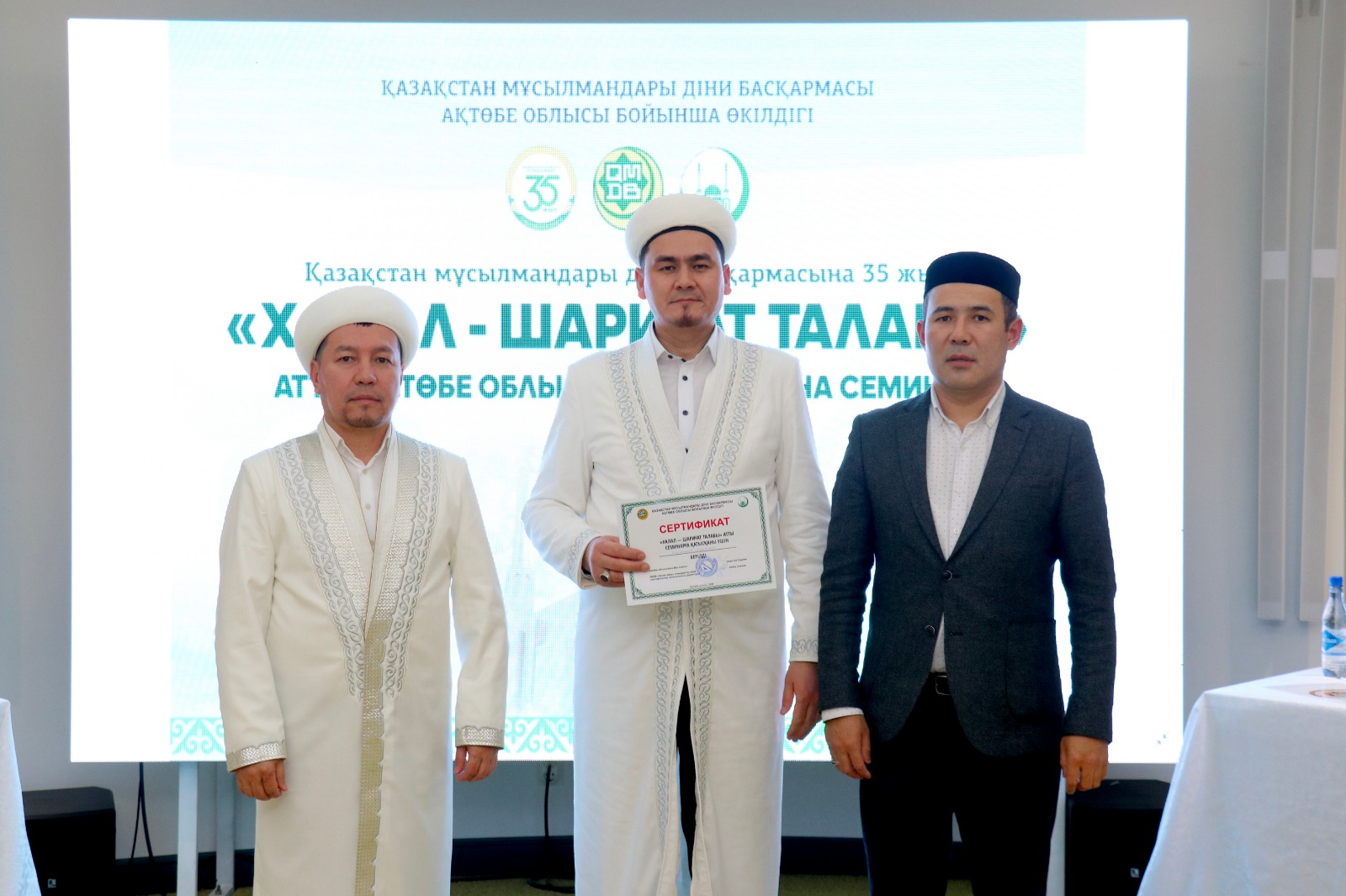 Бүгін Ақтөбе облысының Бас имамы Амантай Садиевтің бастамасымен Ақтөбе имамдары мен ұстаздарына арналған ҚМДБ бекіткен 4 бағыттың бірі — «Діни оқу-ағарту» аясында «Халал — шариғат талабы» атты семинар ұйымдастырылып, оған арнайы елордадан ҚМДБ-ға қарасты «Халал даму» стандарттау және сертификаттау орталығының директоры Айбек Аташев келіп, спикер ретінде семинарды жүргізді.