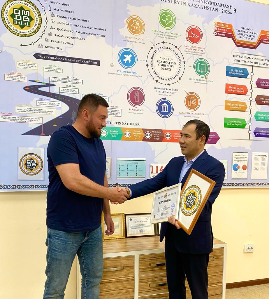 «Хамле Компани ЛТД «ШК» кәсіпорнын сертификаттау мақсатында бірнеше ай бойы екі жақты бірлескен шаралар жүргізілді. Шикізаттары мен тағамдық қоспалары зертханалық сынамадан өткізіліп, өндіріс аумағында аудит жұмыстары орындалды. Өнім өндіру, өңдеу технологиясы, дайын өнімдерді сақтау, тасымалдау, сату кезеңдері де қарастырылып, нәтижесінде шариғат және халал стандарты талаптарына қайшы жағдайлар анықталмады. Толыққанды тексеріс шараларының оң қорытындысынан кейін «Хамле Компани ЛТД «ШК» кәсіпорнына сертификат табыстау жөнінде шешім қабылданды», – дейді сертификаттау шараларын жүргізген технолог маман Жаннат Ахметқызы.