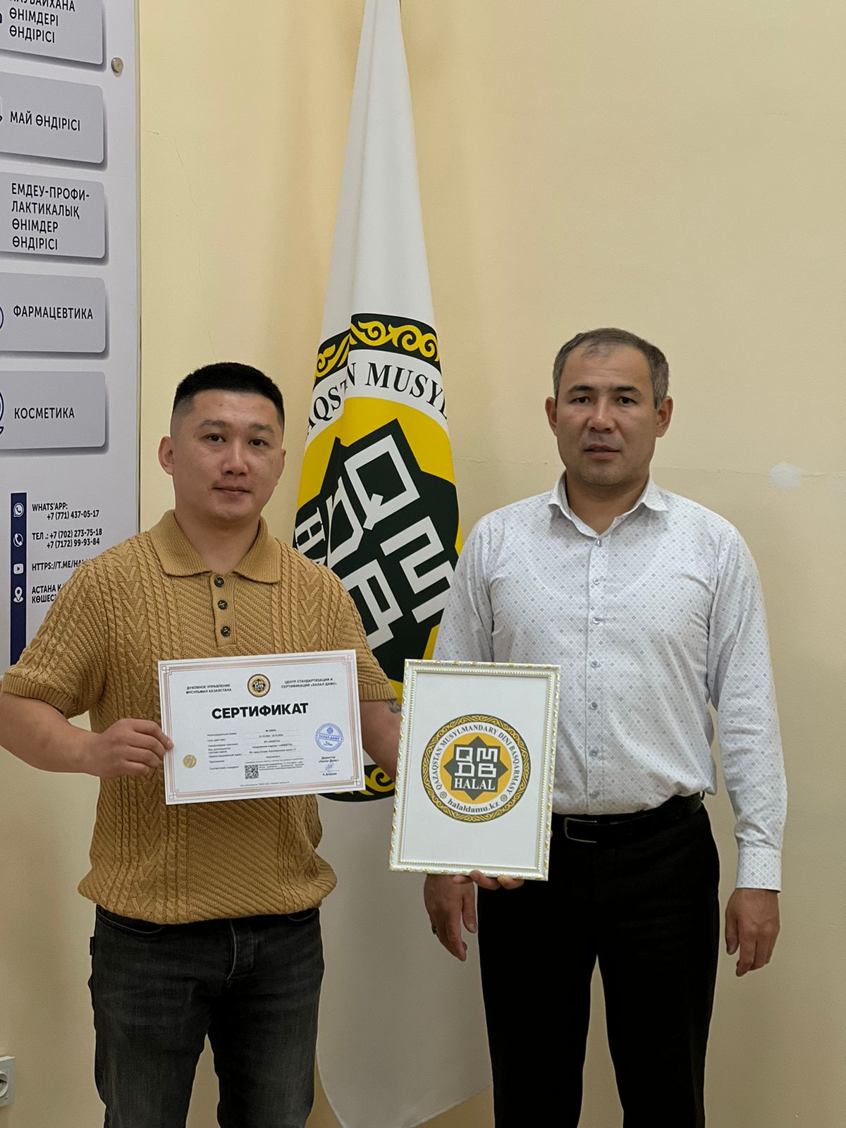 Астана қаласындағы «JANZETO» кондитерлік өнімдері сертификатталды. Кондитерлік дәмхана иесі діни басқармаға арнайы келіп, «Халал Даму» директоры А.Асқарбекұлының қолынан «QMDB HALAL» сертификатын алды.