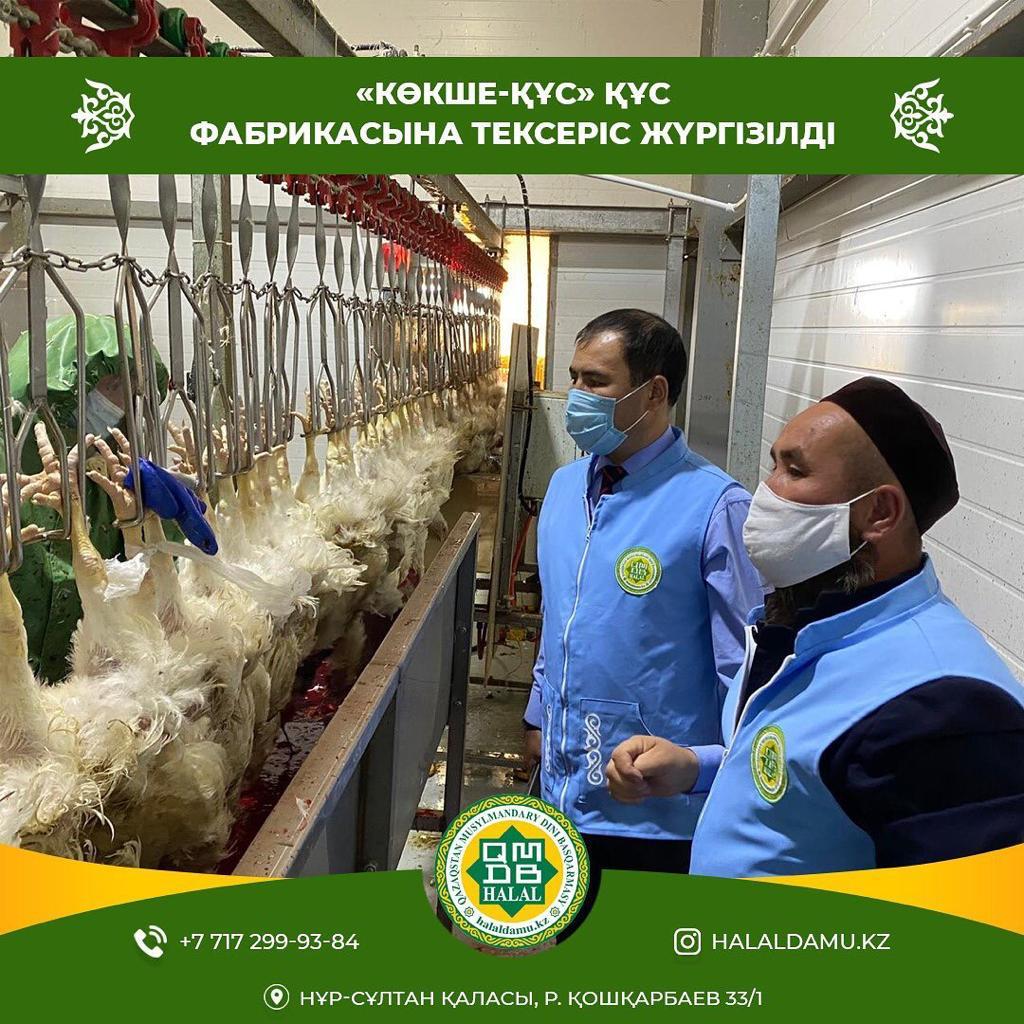 **«ҚМДБ халал» сертификатына ие болған кәсіпорындарды бақылау-қадағалау мақсатында басталған аудит жұмысы Ақмола облысында өз жалғасын табуда.** **«Халал Даму» директоры Айбек Асқарбекұлы, жергілікті инспектор-контролер Науан Муталов және технолог мамандар Данияр Сафиев, Арайгүл Бақытқызының қатысуымен «Көкше құс» құс фабрикасы тексерілді. Білікті мамандардың қатысуымен өткен бақылау-қадағалау барысында құс азығының шариғатқа сай таза болуы, қасапшылардың құсты қолмен бауыздауы, конвейрде айналу ұзақтығы, сулы ванна температуарсы (ошпарка), салқындатқышта сақтау мерзімі секілді барлық процесстің ҚМДБ халал стандарт талаптарына сәйкестігі қадағаланды. Халал өнімдерін өндіру, өңдеу, сақтау, тасымалдау және сатуға қойылатын жалпы стандарт талаптарын бұзушылық жағдайлары тіркелмеді. Санитарлық тазалық мәселесі де жоғары деңгейде. Естеріңізге сала кетейік, «Көкше құс» сауда белгісімен шығарылатын «BLIC TERMINAL» кәсіпорны маусым айында «ҚМДБ халал» стандарты бойынша сертификатталған болатын. Зеренді ауданында орналасқан құс фабрикасы 11 түрлі тауық өнімдерін дайындайды