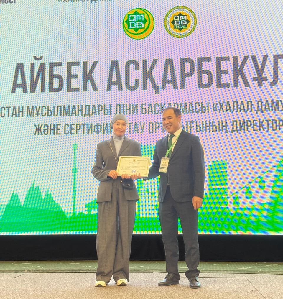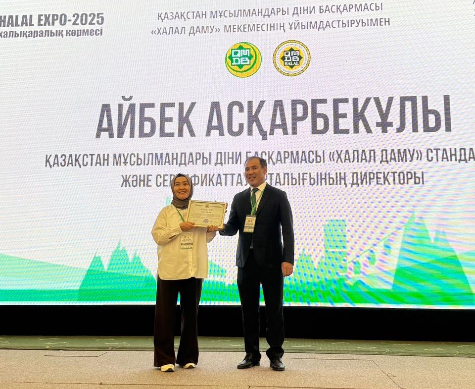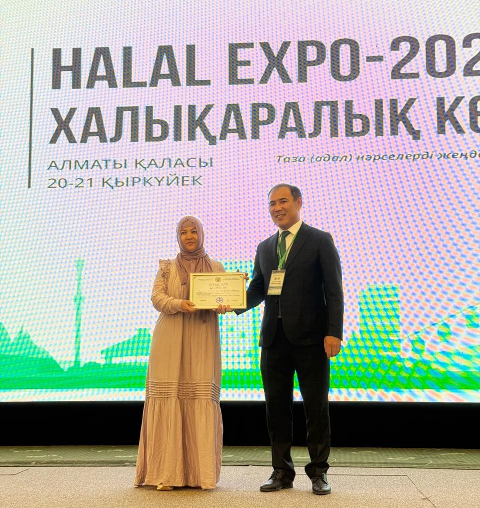 «Halal EXPO 2025» халықаралық көрмесі аясында «Халал Даму» директоры Айбек Асқарбекұлы көрмеге қатысушы кәсіпорындарға алғысын білдіріп, арнайы «Алғыс хаттармен» марапаттады.