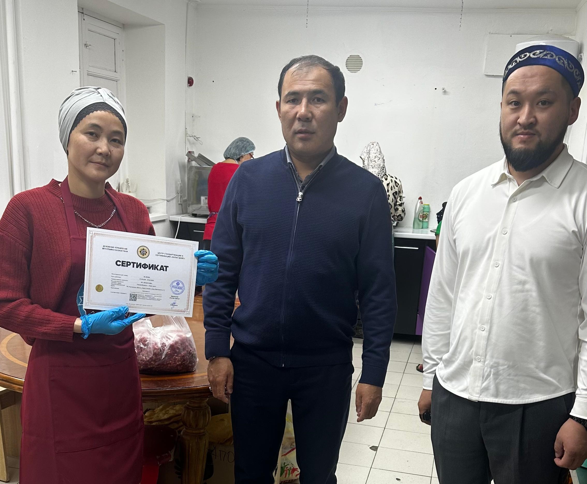 «Халал Даму» директоры Айбек Асқарбекұлы мен Ұлытау облысының бас имамы Бейбіт Бақытжанұлы Ұлытаудағы «Адал дәм» жартылай фабрикаттар дайындайтын цехта аудит жұмыстарын жүргізіп, кәсіпорын өкіліне «QMDB Halal» сертификатын табыстады.