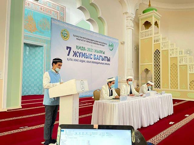 **Маңғыстау облысы «Бекет ата» орталық мешітінде өткен «7 жұмыс бағыты» қала және аудан имамдарының жиынында негізгі бағыттардың бірі – халал тақырыбы талқыланды. Өңірдегі халал индустриясының хал-ахуалына тоқталып, атқарылған және атқарылатын жұмыстарға баяндама жасалды.** «Халал Дамудың» Маңғыстау облысы бойынша жауапты өкілі Айтқожаев Мәжит өңірдегі сертификатталған кәсіпорындардың жалпы саны, бақылау-қадағалау шараларының жүргізілуі, сертификаттауға қойылатын негізгі талаптар, аудан-ауылдар бойынша «ҚМДБ халал» стандартына сай өндіріс орындарын көбейту мәселелеріне тоқталып, алдыңғы жылдармен салыстырғанда халал кәсіпорындар санының артқанын жеткізді. Естеріңізге сала кетейік, өз өңіріңіз бойынша сертификаттаудан өткен кәсіпорындар тізімін www.halaldamu.kz сайтына кіріп, «іздеу» батырмасына тиісті сөзді жазу арқылы таба аласыздар!
