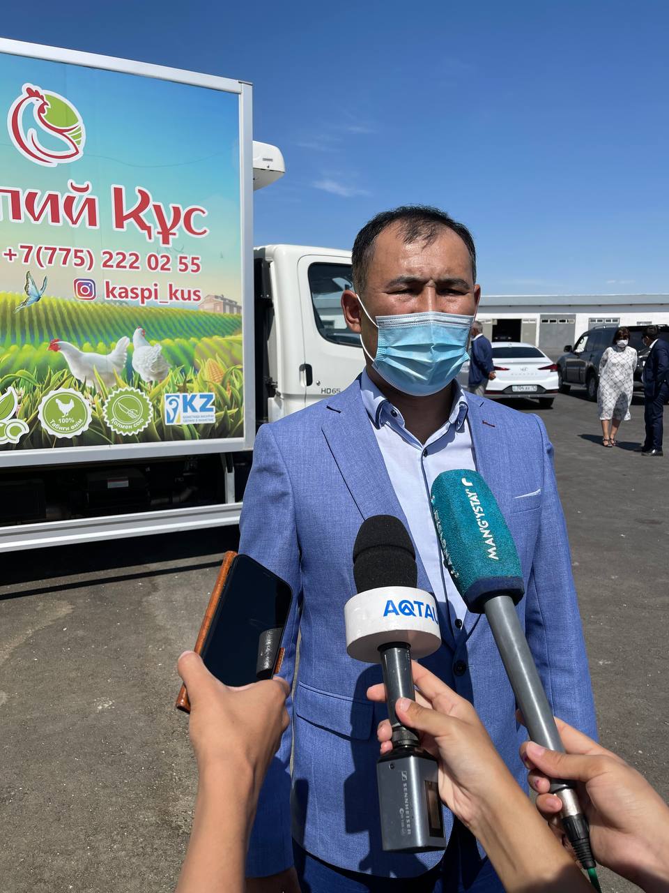 "Маңғыстау облысындағы бройлер тауықтарды өндіретін бірден-бір ірі құс фабрикасы - "Ақтау-Агро". Кәсіпорын үстіміздегі жылдың көктемінде іске қосылды. Қазіргі таңда жергілікті сауда орындарында «Каспий құс» сауда белгісімен шығарылатын өнімдердің алғашқы партиясы сатылымға енгізілді. Жоспар бойынша құс фабрикасы облыс халқының тауық еті өнімдеріне қажеттіліктің жартысын қамтамасыз етеді деп күтілуде. Маңғыстау облысы жылына орта есеппен 11,5 мың тонна тауық етін тұтынады, ал осы уақытқа дейін бұл өнім импортқа тәуелді болып келген. Жаңа құс фабрикасының қуаттылығы - жылына 5 мың тоннаға жуық тауық еті деп жоспарлануда. "Ақтау-Агро" кешені 3 үлкен алаңнан тұрады. Олар: инкубатор, 30 мың басқа арналған 16 құс қорасы, ғылыми зертхана мен ветеринарлық пост бар. Құс фабрикасында сағатына 8000 мың бас тауық сойылады. "Ақтау-Агро" құс фабрикасының өндірісі мен дайын өнімдері "Халал Дамудың" білікті мамандары тарапынан толықтай тексеріліп, нәтижесінде, аталған кәсіпорын "Мал бауыздау және ет өңдеу", "Халал өнімдерді өндіруге, өңдеуге, дайындауға, сақтауға тасымалдауға және сатуға қойылған жалпы талаптар стандартына" сай деп танылды. "Ақтау-Агро" – еліміздің батыс өңіріндегі отандық өнімдерді өндіретін ең ірі кәсіпорындардың бірі. Сондықтан, отандық өнімдерді қолдауымыз керек", – деді Айбек Асқарбекұлы.