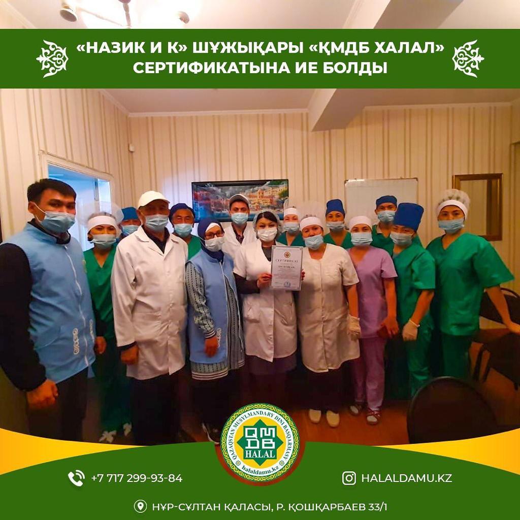 ***«Назик и К» сауда белгісімен шығарылатын шұжық және полуфабрикат өнімдері «ҚМДБ халал» сертифткатынаие болды.** «Халал Даму» мамандары өндіріс аймағында бақылау-қадағалау жұмыстарын жүргізіп, өнімдердің стандарт талабына сай дайындалуын қадағалады. Цех қызметкерлеріне шариғат және халал стандарт талабы бойынша өнім өндірудің ерекшеліктері мен маңыздылығы жөнінде оқу-семинар өткізілді. «Назик и К» кәсіпорнының 8️ түрлі шұжық өнімі және 8 түрлі полуфабрикаттары «Халал өнімдерді өндіру, өңдеу, дайындау, сақтау, тасымалдау және сатуға қойылатын жалпы стандарт» талаптары бойынша сертификатталды. «Назик и К» өнімдеріне берілген «ҚМДБ халал» сертификатының жарамдылық мерзімі: 08.09.2020-07.09.2021*