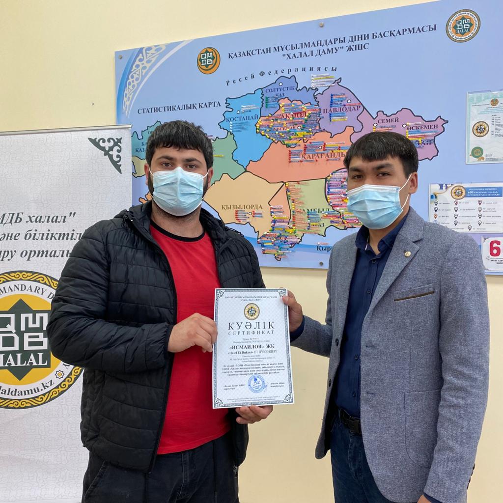 Қасиетті Құрбан айт мерекесі қарасыңда елордадағы халал кәсіпорындар тізімі тағы бір мекемемен толықты. Ахмет Байтұрсынұлы көшесі, 17 және Қасым Қайсенов көшесі, 2 мекен-жайлары бойынша орналасқан "Halel et dukeni"-нің 2 сауда нүктесі "QMDB HALAL" сертификаты мен қасапшы куәлігіне ие болды. Мұсылмандардың қара шаңырағына келген кәсіпорын өкіліне "Халал Дамудың" технологы, ветеринарлық санитария ісінің маманы Данияр Сафиев адалдықты растаушы діни басқарманың арнайы сертификатын табыстады.