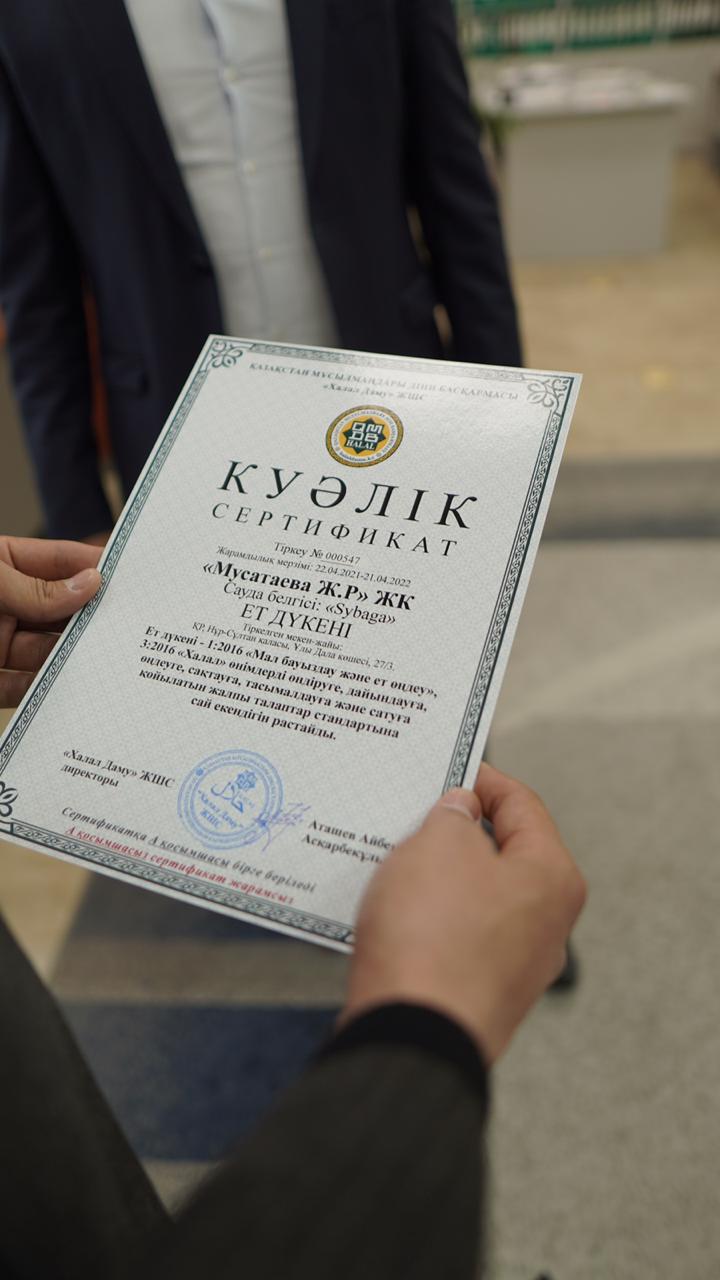 НҰР-СҰЛТАН Қ.: "SYBAGA" ЕТ ДҮКЕНІ СЕРТИФИКАТТАЛДЫ