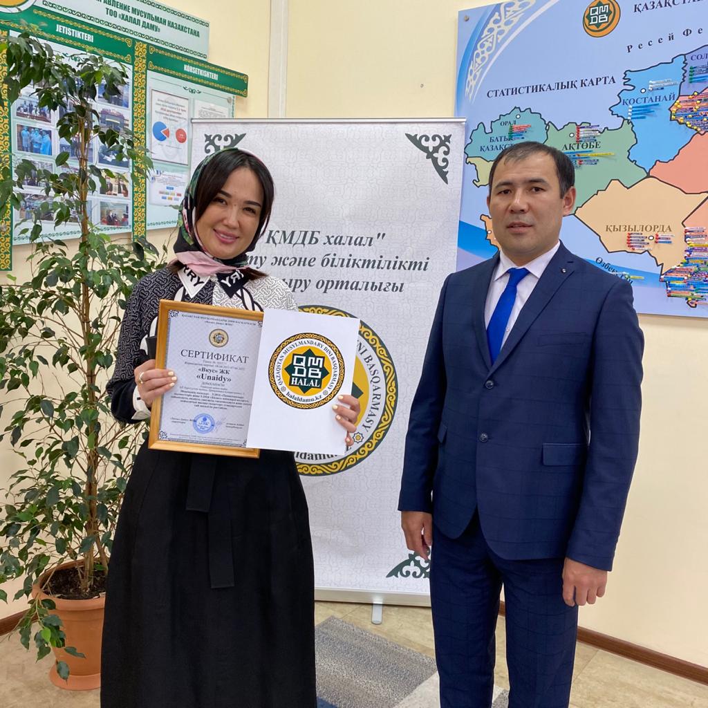 **Елорда тұрғындарына кеңінен танылған "Unaidy" дәмханасы "QMDB halal" стандарты бойынша сертификатталды.** "QMDB halal" сертификатының маңыздылығын түсініп, Қазақстан мұсылмандары діни басқармасына арнайы келген Ләйла Сұлтанқызына "Халал Даму" директоры Айбек Асқарбекұлы ұжым жұмысы мен сертификаттау барысын, стандарттау кезеңдерін, халал таңбасының өзге адалдықты анықтайтын белгілерден ерекшелігін түсіндірді. "Халал – адалдық пен тазалықтың таңбасы. Халал сертификаттау және стандарттаумен тек діни басқарма айналысуы тиіс. "Халал Даму" ұйымы еліміздегі күллі мұсылмандардың адал ас тұтынуына жауапкершілік жүгін арқалаған ұйым. Қасиетті Рамазан айының қарсаңында, барша ауыз бекіткен мұсылмандарға адал ас ұсыну ниетімен "QMDB halal" стандарты бойынша сертификаттаудан өткендеріңізге Алла разы болсын! Алла кәсіптеріңізге береке берсін! Рамазан айының жақсылығы мен сауабы сіз бен бізге болғай!" – деген Айбек Асқарбекұлы "Unaidy" дәмханасында алдағы уақытта мамандар тарапынан міндетті тексеріс жұмыстары жүргізілетінін ескертті. Ләйлә Сұлтанқызы да өз кезегінде "Халал Даму" мамандарына алғысын білдіріп, ұжым жұмысына сәттілік тіледі. "Unaidy" дәмханасына берілген сертификаттың мерзімі: 08.04.2021- 07.04.2022 жылдар аралығында. Дәмді де, халал ас мәзірін ұсынатын "Unaidy" дәмханасын Нұр-Сұлтан қаласы, Дінмұхаммед Қонаев көшесі,2 мекен-жайынан таба аласыздар!