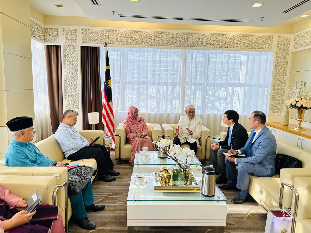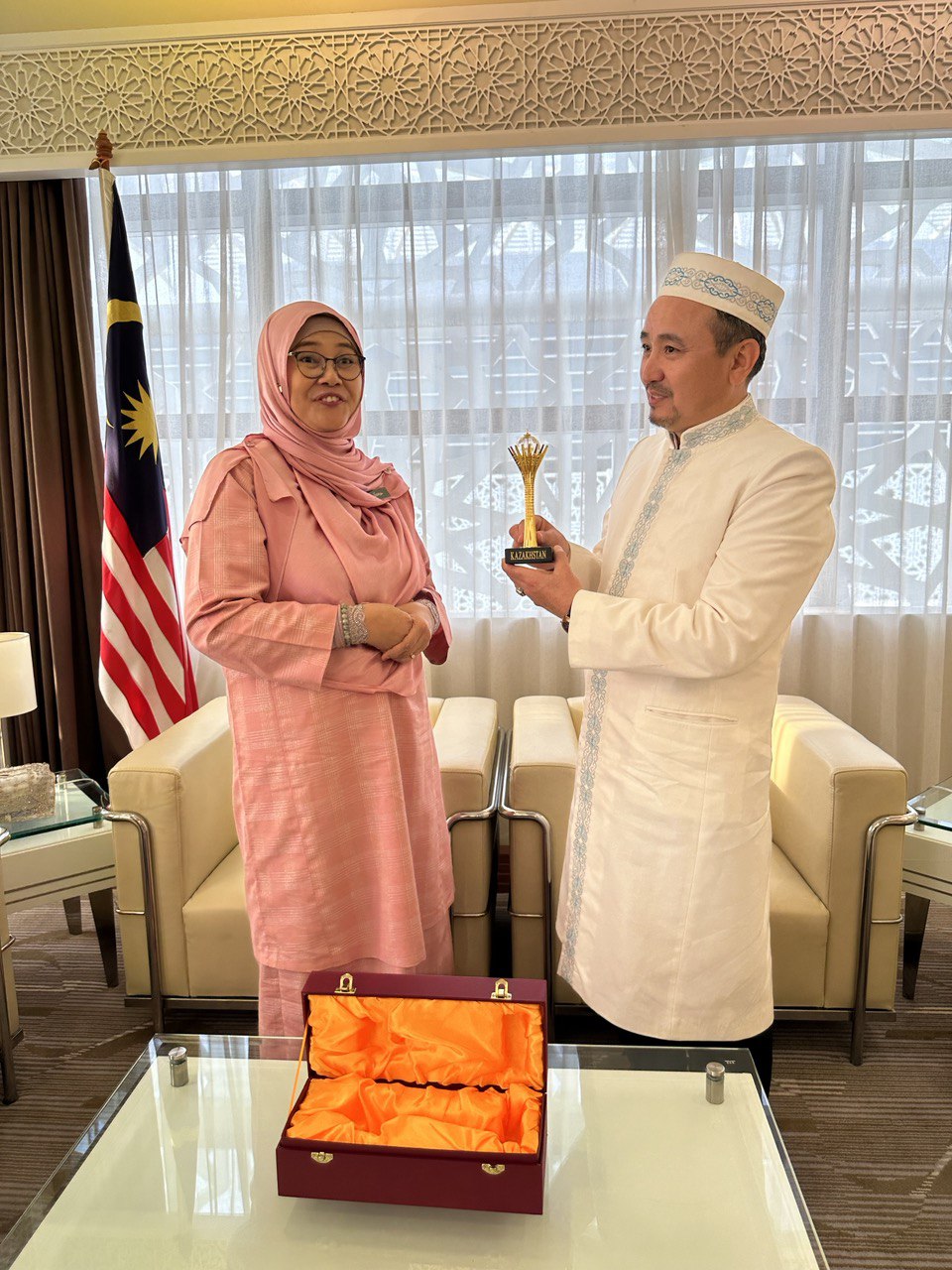 В ходе встречи госпожа Датук Хаджа Хакима Бинти Мохд Юсоф сообщила, что Центр стандартизации и сертификации «Халал Даму» при Духовном управлении признан JAKIM, халяльной сертифицирующей организацией в Казахстане и был выдан подтверждающий документ.