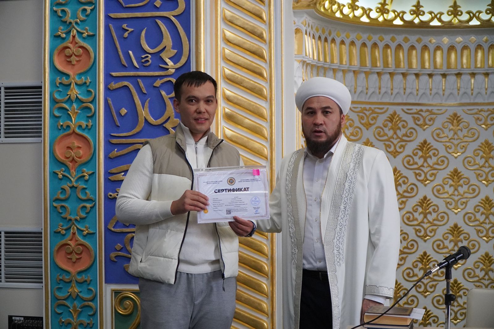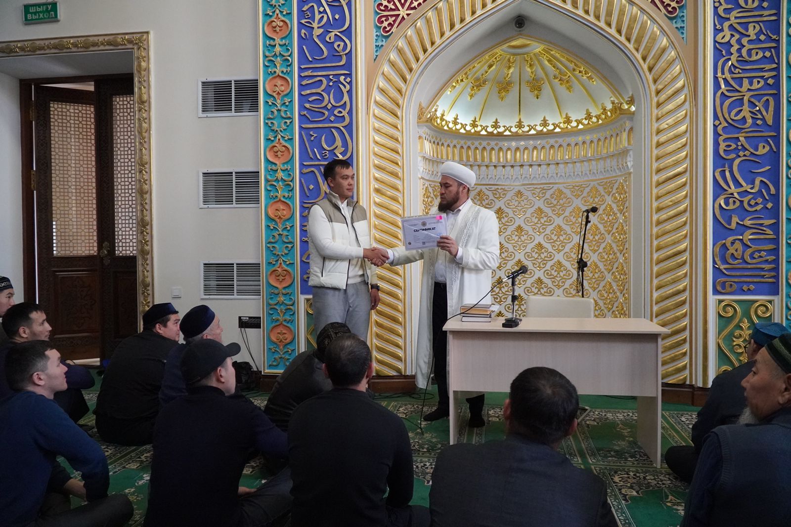 ҚМДБ-ның Қостанай облысы бойынша Бас имамы Бахытбек Нұрқабылұлы Қостанай облыстық мешітіне жиылған барша жамағаттың алдында «Happy Сake» кондитерлік өнімдерін шығарушы мекемеге «QMDB Halal» сертификатын табыстады.