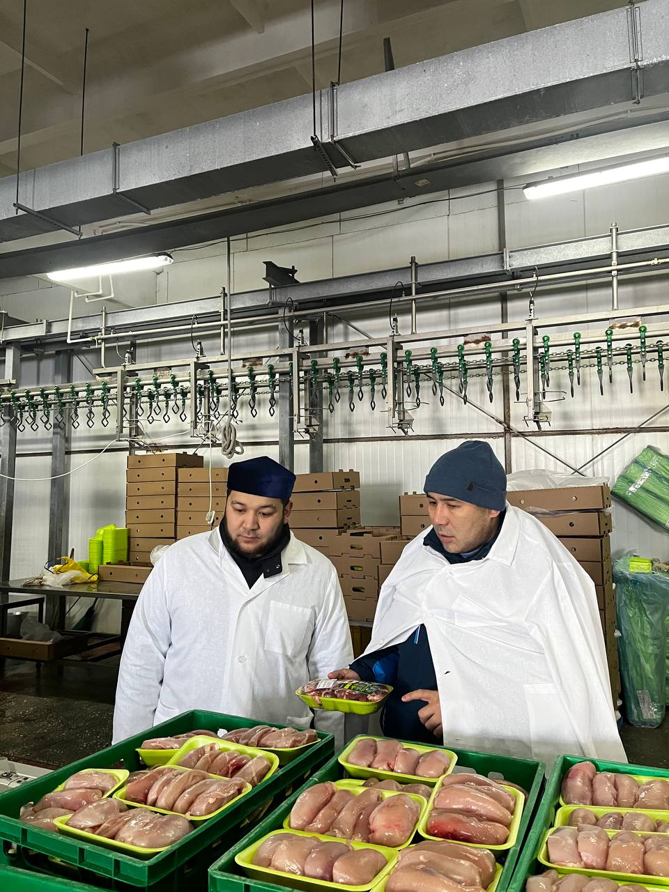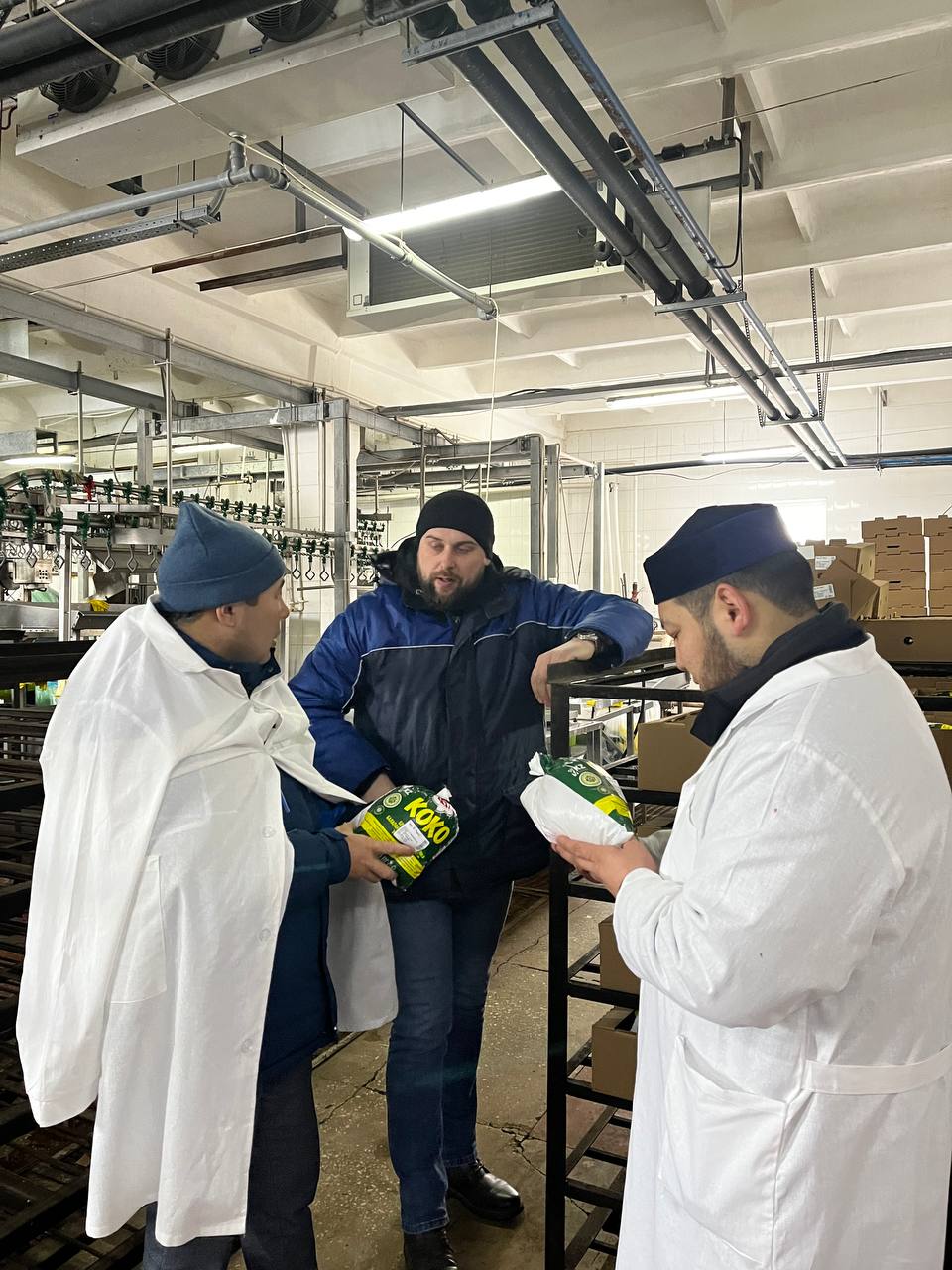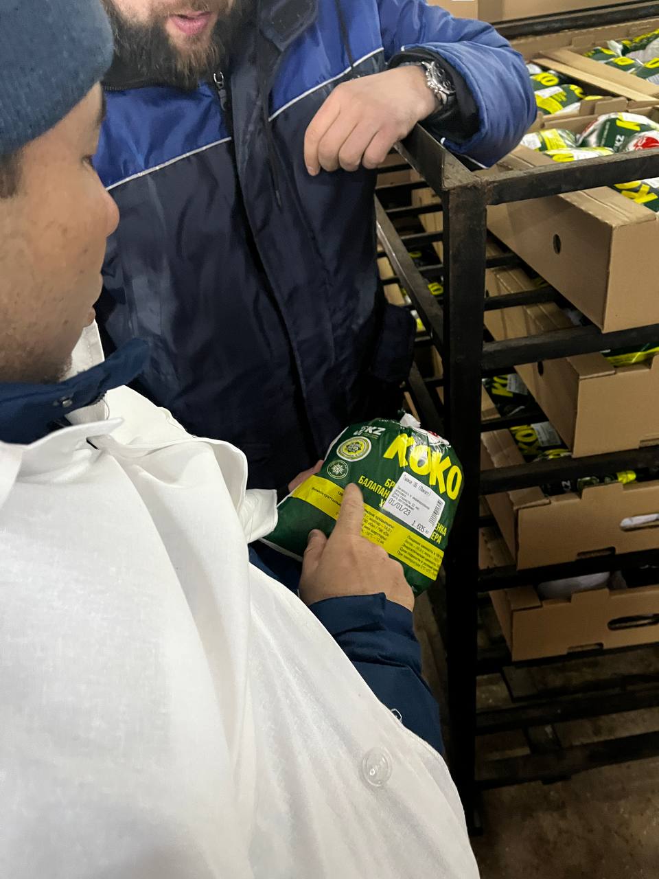 Қазақстан Мұсылмандары Діни Басқармасының Халал Даму стандарттау және сертификаттау орталығы басшысы Айбек Асқарбекұлы мен Қостанай облысы бойынша жауапты қызметкері Алишер Балахмет Қостанай облысындағы «QMDB HALAL» сертификатына сәйкес өнім өндіруші кәсіпорындарда кезектен тыс бақылау шараларын жүргізуде.