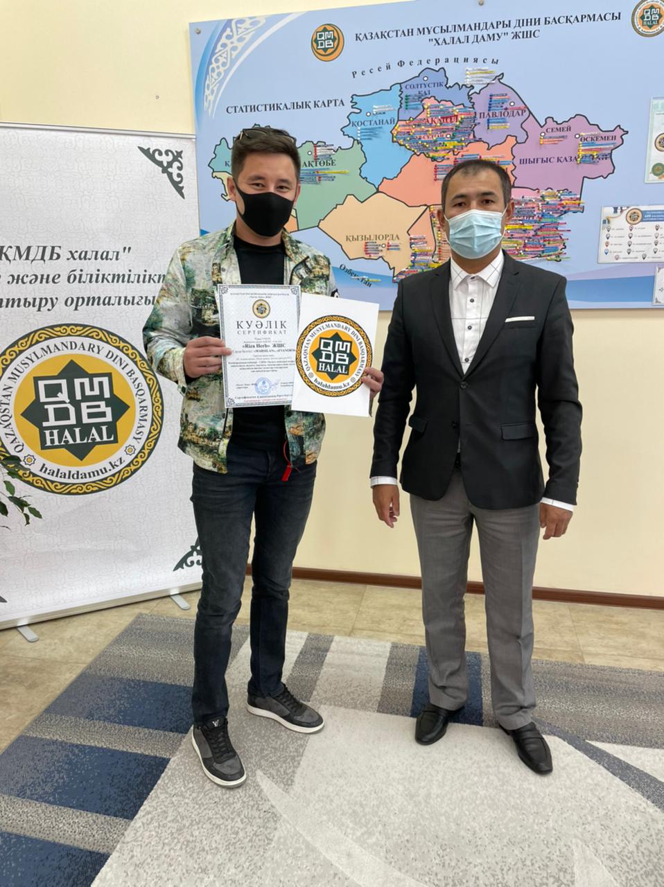 "KBT STORE" жеке кәсіпкерлігінің "LUCEM" және "LAMINARY" өнімдері мен "RIZA HERB" кәсіпорнының "MARSILAN", "EVANORM" сауда белгісімен шығарылатын емдік-профилактикалық өнімдері "QMDB HALAL" сертификатына ие болды. Сертификатты "Халал Даму" директоры Айбек Асқарбекұлы табыстады. Аталған кәсіпорындар "Халал өнімдерді өндіруге, өңдеуге, дайындауға, сақтауға, тасымалдауға, сатуға қойылатын жалпы талаптар стандарты" бойынша сертификатталды.