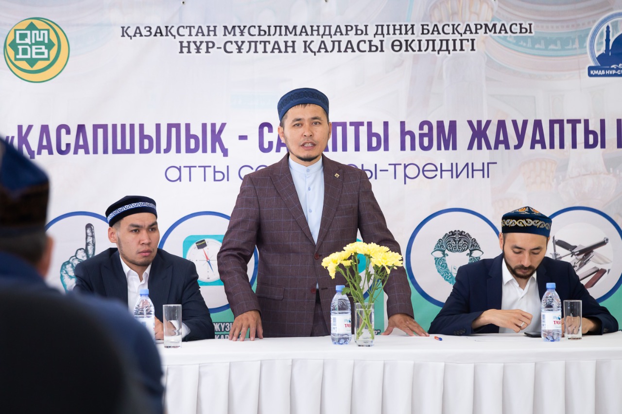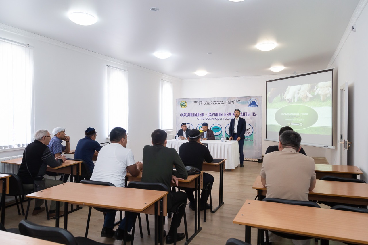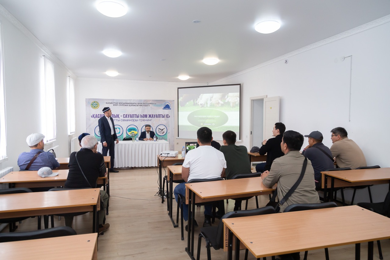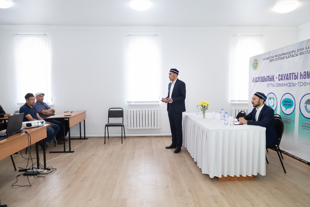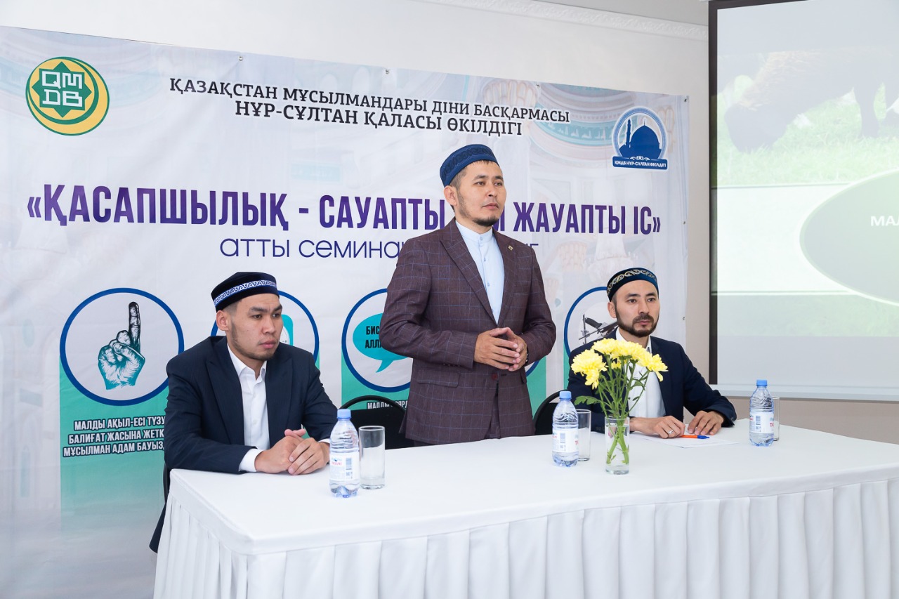 Құрбан айт қарсаңына орай қасапшылардың діни сауатын жетілдіру мақсатында ҚМДБ-ң Нұр-Сұлтан қаласы өкілдігінің ұйымдастыруымен «Қасапшылық – сауапты һәм жауапты іс» тақырыбында қасапшыларға арналған семинар өткізілді. Семинарға «Зекет» қорының директоры Қанат Қыдырмин, «Халал Дамудың» технологы, ветеринарлық санитария ісінің маманы Данияр Бақзейнелұлы мен жергілікті қасапшылар қатысты.