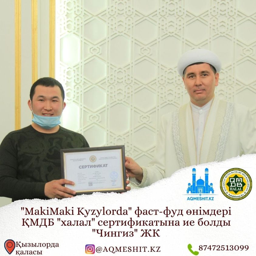 ҚМДБ-ның Қызылорда облысы бойынша Бас имамы Болатбек Ұласқанұлы қасиетті жұма күнінде «Ақмешіт-Сырдария» орталық мешітіне жиылған барша жамағаттың алдында «MakiMaki Kyzylorda» фаст-фуд өнімдерін шығарушы мекемеге Қазақстан мұсылмандары діни басқармасының «QMDB Halal» сертификатын табыстады.