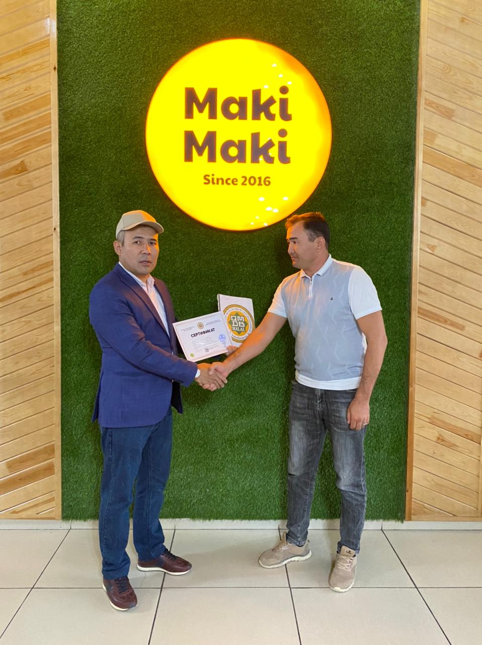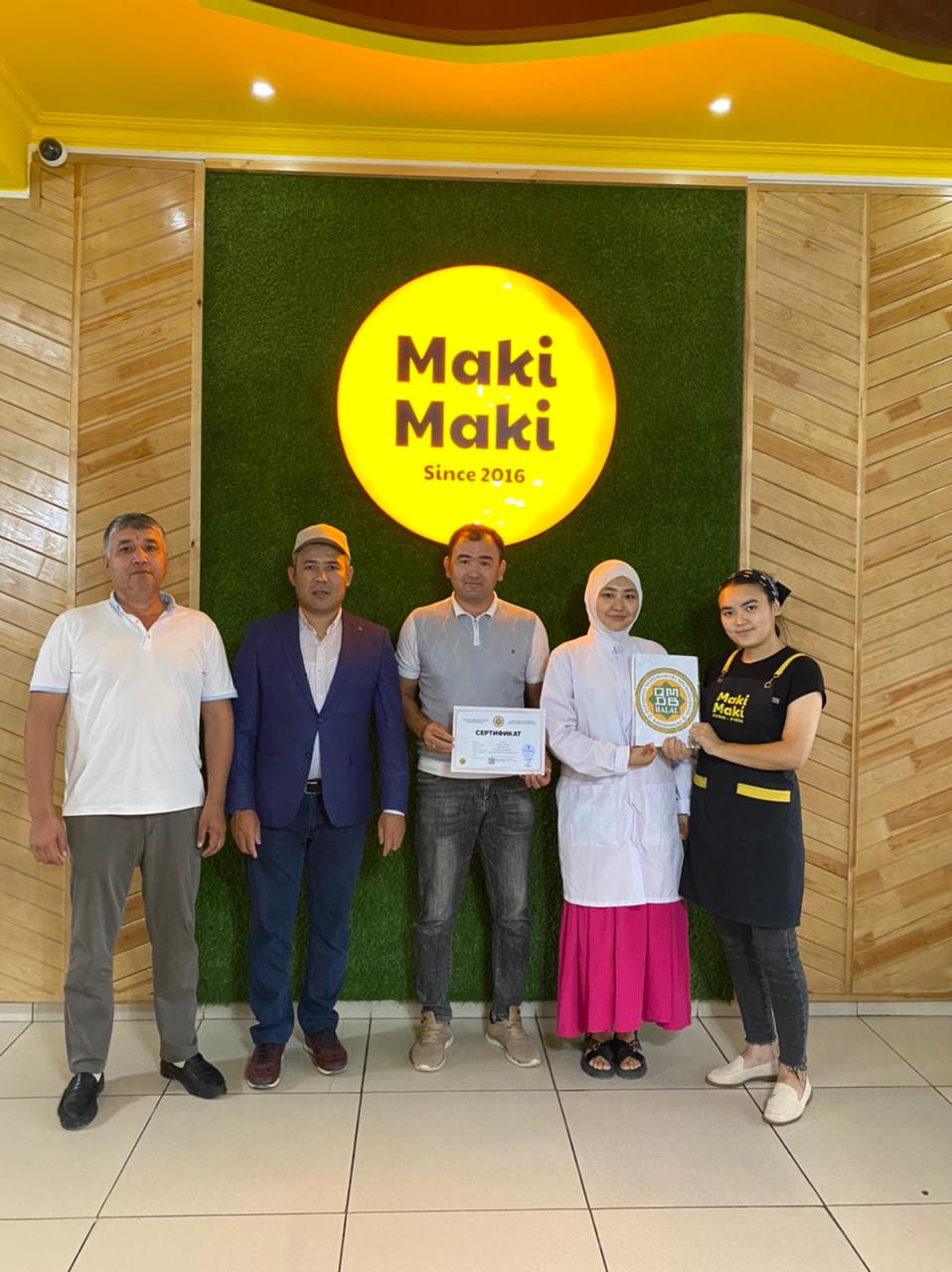 «Maki Maki» фаст-фуд өнімдері «Халал Даму» мамандары тарапынан толық тексерістен өтіп, «Тамақтандыру қызметтері», «Халал өнімдерді өндіру, дайындау, сақтау, тасымалдау және сатуға қойылатын жалпы стандарт» талаптарына сай деп танылды.