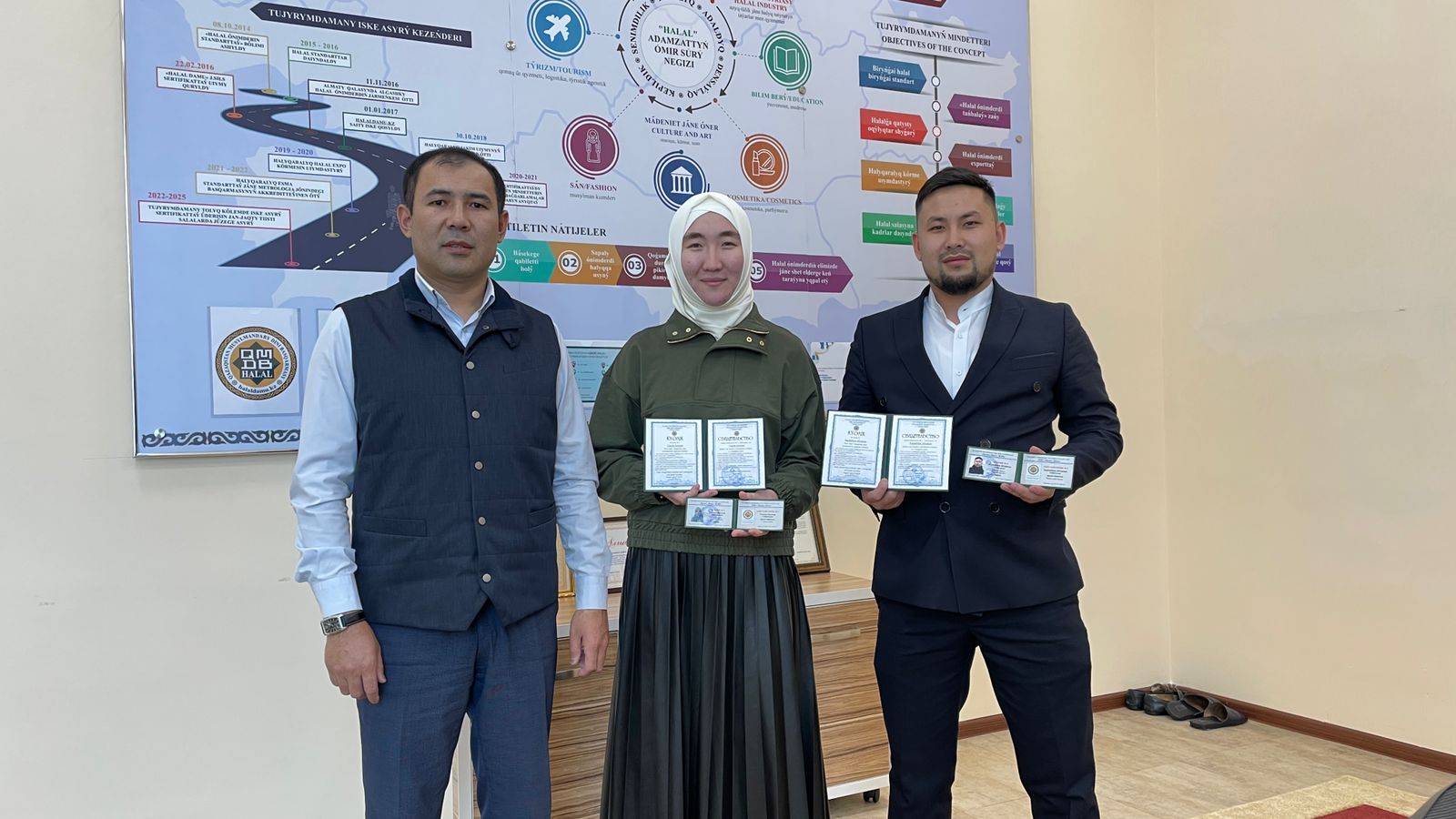 «QMDB Halal оқыту орталығында» өткізілген мамандардың білімін жетілдіруге арналған үш күндік оқу-семинарға қатысушы мамандар марапатталды. Мамандарға біліктілігін арттыру бойынша арнайы куәлікті «Халал Даму» директоры Айбек Асқарбекұлы табыстады.