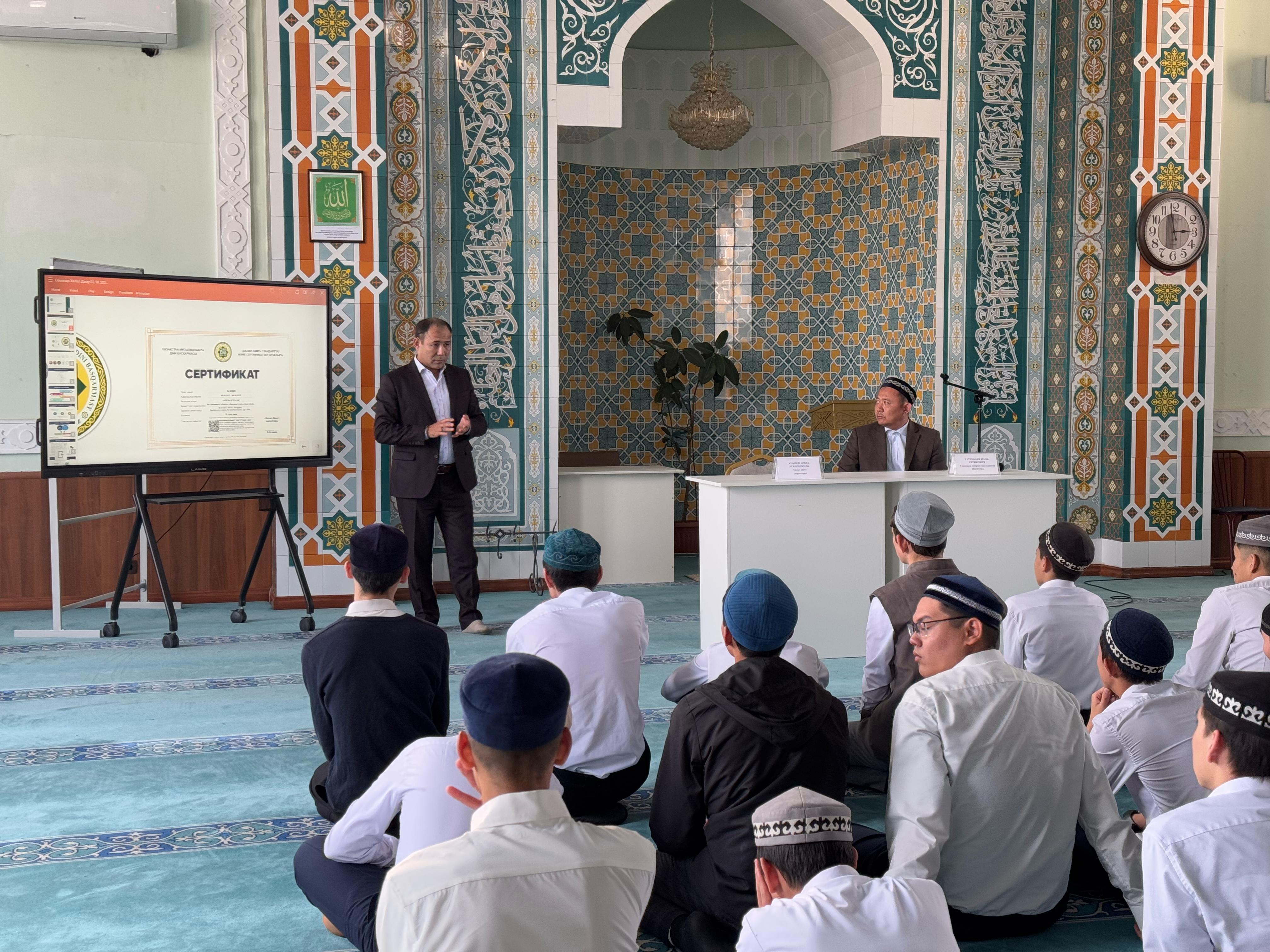 Алматы облысындағы Үшқоңыр медресесінде шәкірттерге арналған «Халал астың маңызы» тақырыбында семинар ұйымдастырылды. Іс-шараға «Халал Даму» директоры Айбек Асқарбекұлы, медресе директоры Мәди Серікұлы және технолог Әселхан Сыдық қатысып, шәкірттерге халалдың мәні мен талаптары жөнінде жан-жақты ақпарат берді.