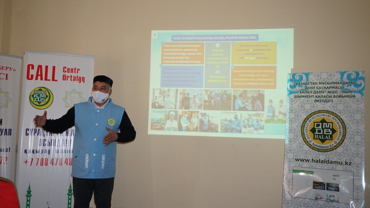 **Шымкент қалалық орталық мешітінде Түркістан облысы, Төле би ауданы және жергілікті қала имамдарына арналған оқу-әдістемелік, іс-тәжірибе алмасу семинарында "Халал Даму" бағыты жөнінде дәріс оқылды.** Дәрісті Оңтүстік өңірдегі "Халал Дамудың" жергілікті өкілі Сарыбаев Қазыбек жүргізіп, семинар барысында халал және харам, халал өнімдер дайындау технологиясы, тағамдық қоспалар құрамы мен ерекшелігі, мал бауыздау және ет өңдеуге қойылатын шариғат және стандарт талаптары турасында дәріс оқыды. Тамақтандыру қызметтері мен халал өнімді өндіруге, өңдеуге, дайындауға, сақтауға, тасымалдауға және сатуға қойылатын стандарт талаптарын түсіндірді. Сонымен қатар, жақында ғана жаңартылған www.halaldamu.kz сайт жұмысы таныстырылды. Өңірдегі "ҚМДБ халал" сертификатын иемденген кәсіпорындар көрсеткіші, жергілікті компаниялар жұмысын бақылау-қадағалау, тұтынушыларды ақпараттандыру, халал турасында үгіт-насихат, жарнамалау жұмыстары жөнінде мағлұмат беріп, өңірдегі халалды дамытуға ат салысуға шақырды. Ескерте кетейік, имамдар мен кәсіпкерлердің, кәсіпорын қызметкерлерінің білімін жетілдіруге бағытталған мұндай оқу-семинарлары еліміздің барлық өңірлерінде жыл бойы үздіксіз өткізіліп келеді.