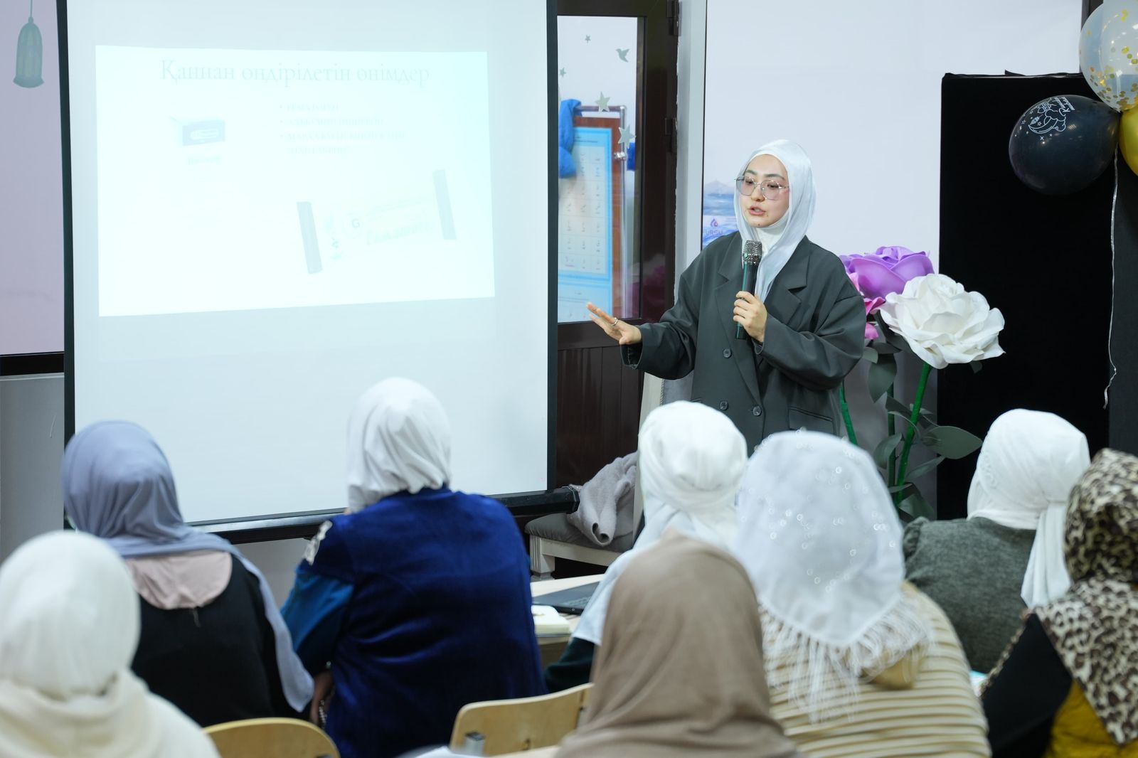 Шымкент қалалық орталық мешітінің әйел жамағатына арналған «Рамазандағы адал астың маңызы» тақырыбындағы дәріс барысында «Халал Дамудың» Шымкент қаласы бойынша жауапты технологы Аружан Аралбай адал азық-түліктің мұсылман өміріндегі орны мен оның рухани және физикалық денсаулыққа тигізер пайдасы жайлы кеңінен түсіндірді.