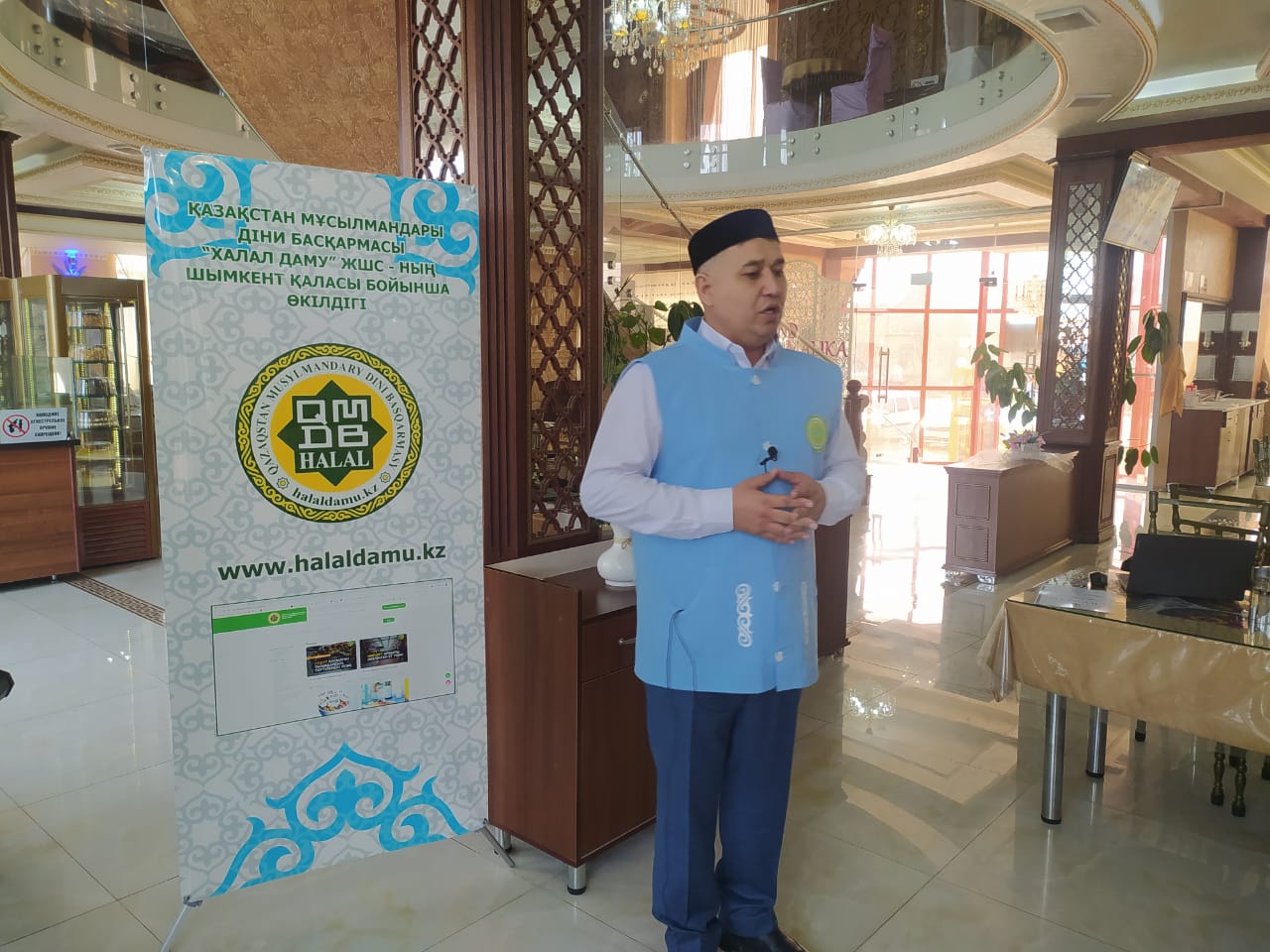 **«ҚМДБ халал» стандарты бойынша сертификатталған кәсіпорындар көп орналасқан аймақтың бірі – шырайлы Шымкент. Қазіргі таңда Шымкент қаласы бойынша 40-тан аса кәсіпорын «Халал Даму» бақылауында. Олар қоғамдық тамақтану орындары, кондитерлік дүкендер, шұжық цехы, сүт және май өнімдері, сусын, ұн өндірісі, қасапхана, ет дүкендері, тағамдық қоспалар, балмұздақ т.б түрлі өндіріс салаларын қамтитын кәсіпорындар.** Алайда, халық сұранысы мен тұтынушылар талабына сай өңірдегі халал өндіріс орындарын арттыру күн тәртібіндегі негізгі мәселелердің бірі. Осы орайда «Халал Дамудың» Шымкент қаласы бойынша жауапты өкілі Сарыбаев Қазбек тұрақты түрде үгіт-насихат жұмыстарын, ақпараттандыру шараларын жүргізіп келеді. Бүгін, өңірдегі бірқатар кәсіпкерлердің басын қосып, діни басқармаға қарасты «Халал Даму» халал стандарттау және сертификаттау мекемесінің жұмысымен таныстырып, «ҚМДБ халал» сертификатының талаптары мен артықшылықтары жөнінде түсіндірді. > «Халал сертификаты не үшін қажет?! Сертификат сіздің кәсібіңізге не береді?! Қандай артықшылықтары бар?! Кәсіпкерлер тарапынан жиі қойылатын сұрақтар осы. Халал – шариғат талабы, халықтың сұранысы. Қазіргі өндіріс технологиясы дамыған заманда тағамның құрамына күдікпен қарайтын жағдайға жеткеніміз жасырын емес. Сол себепті, табиғилық пен тазалықтың кепіліне айналған «халал» таңбасына халық ерекше сенім артады. Біздің мүдде мен сіздің еңбектің ұштасуы арқылы тұтынушыларға адал өнім ұсынатын боламыз» – деген Қазбек мырза кәсіпкерлерге халал тақырыбын тереңірек түсіндіріп, қатысушылар сұрақтарына жауап берді. Жиын соңында «Малика» сауда белгісімен шығарылатын «Ураимжанов» кәсіпорнының кондитерлік өнімдеріне «ҚМДБ халал» сертификаты табысталды. Кәсіпорнының кондитерлік өндірісте қолданатын шикізат өнімдері мен тағамдық қоспалары технолог мамандар тарапынан толықтай тексеріліп, лабораториялық зертхана жүргізілгеннен кейін, «Халал өнімдерді өндіруге, өңдеуге, дайындауға, сақтауға, тасымалдауға және сатуға қойылатын жалпы стандарт» талаптары бойынша сертификатталды. Сонымен қатар, жергілікті өкіліміз өңірдегі «ҚМДБ халал» таңбасын заңсыз пайдаланушы кәсіпорындарға қарсыда тиімді шаралар жүргізіп, жақсы нәтижелер көрсетуде.