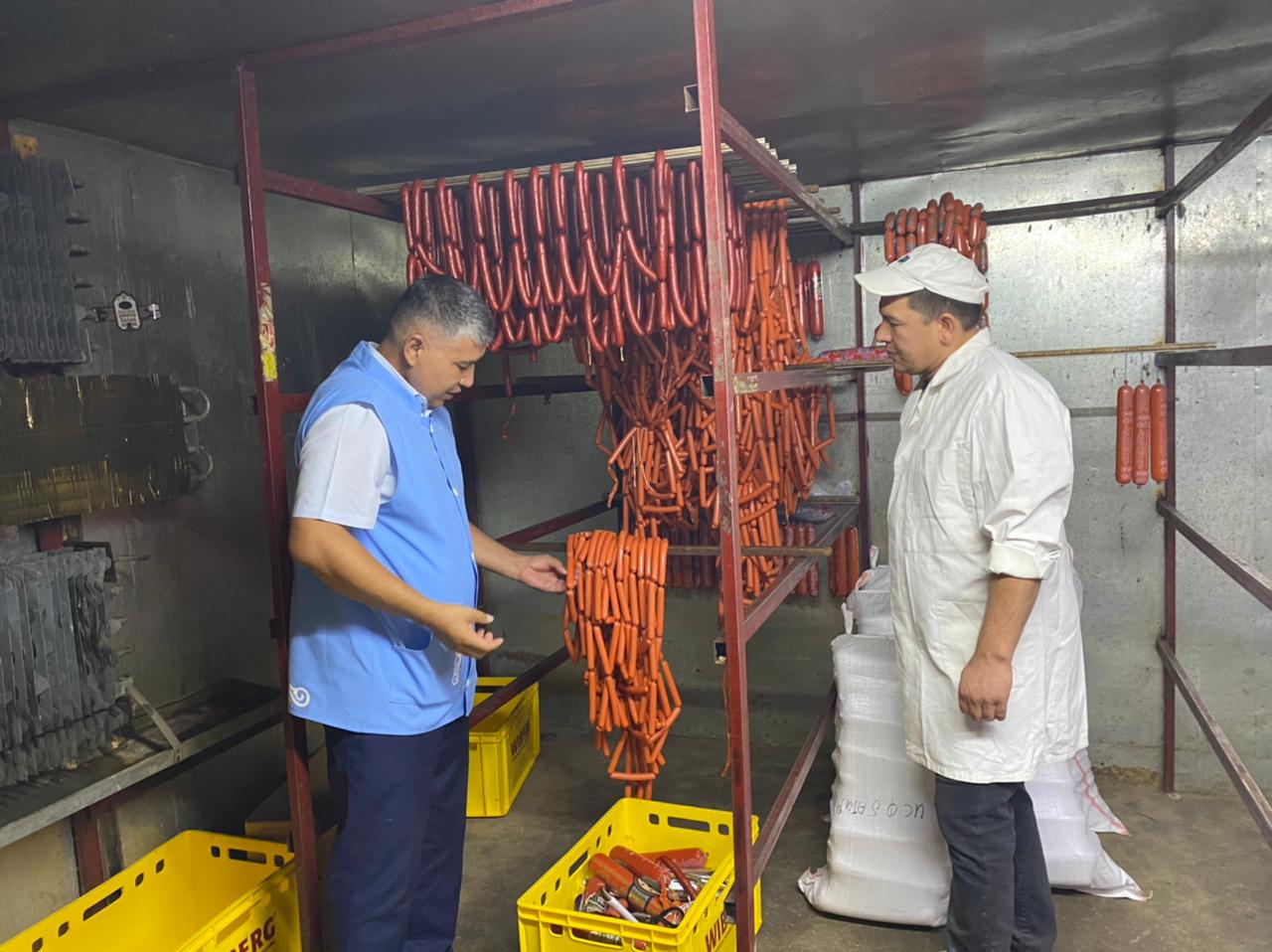 Шымкент қаласындағы кезекті айлық бақылау-қадағалау барысында «Мирахметов» және «Нұрдәулет» шұжық цехтары тексерілді. Ревизорлық бақылау шараларын жергілікті инспектор-контролер Қазбек Сарыбаев пен Аружан Аралбай орындады.