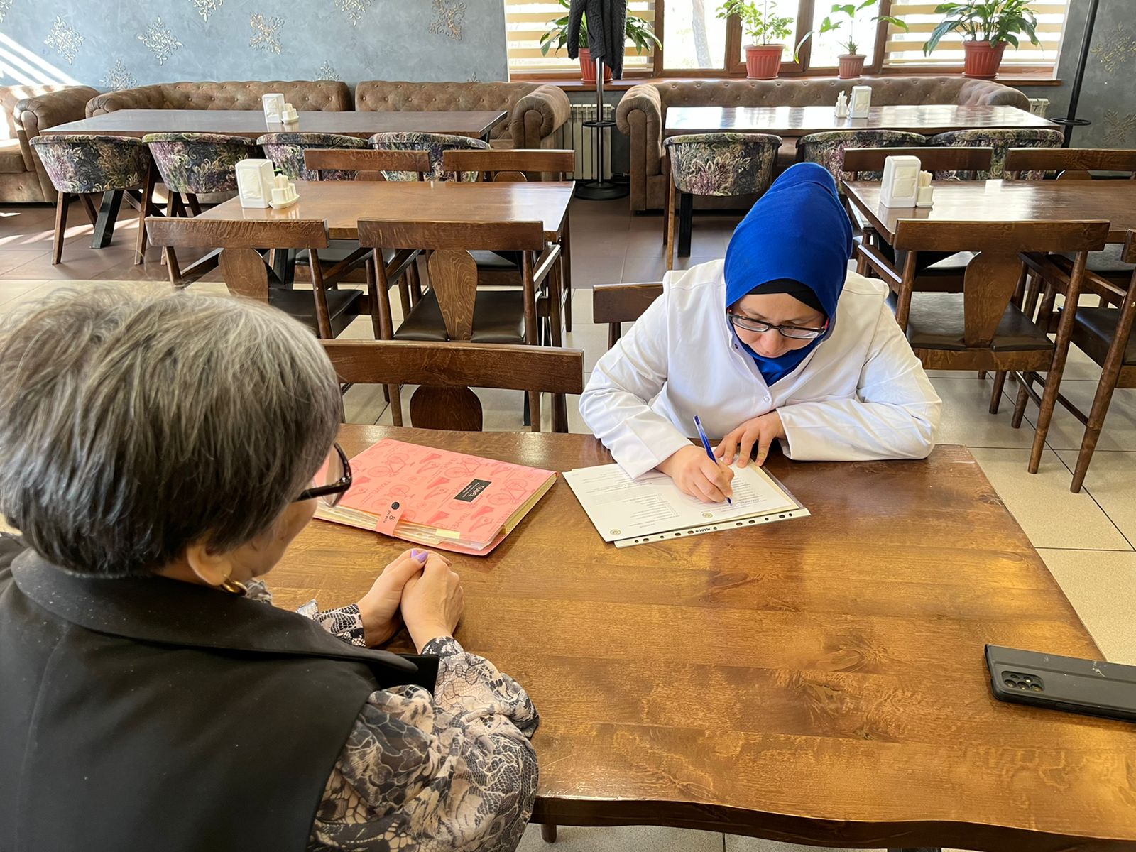 «Халал Даму» маманы Омарова Айжан мен жергілікті жауапты өкілі Үмбет Досжан кезекті тексерісі барысында .