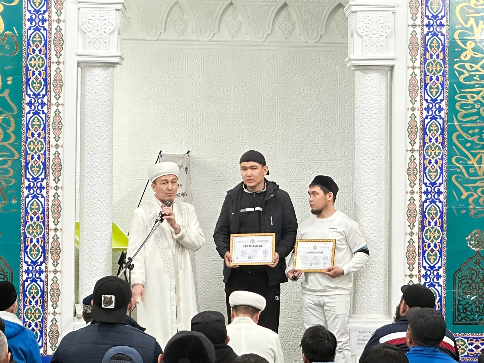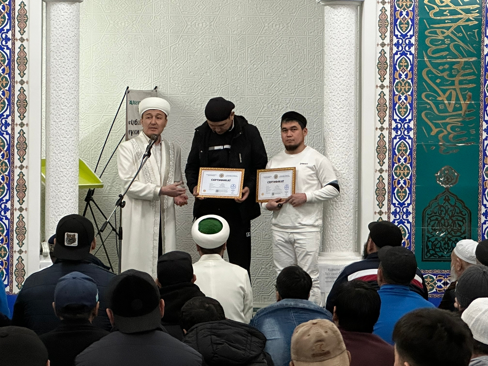 Жетісу облысының өкіл имамы Алмас Сағидоллаұлы «АГРО САУДА» ЖК ет дүкені және «Нугуманова Р.» ЖК тамақтану орнына сертификаттар табыстады.