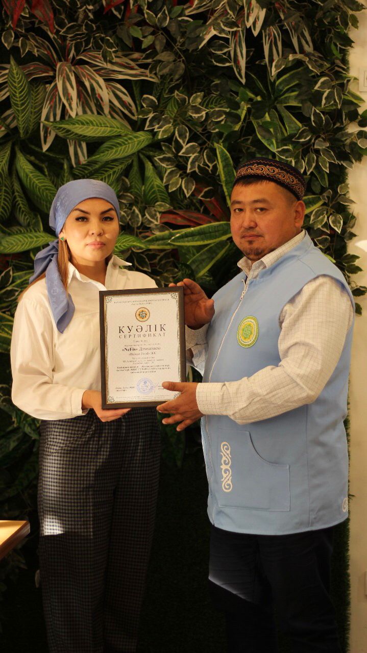Талдықорған қаласында орналасқан “NeFis” дәмханасы «QMDB Halal» сертификатына ие болды. Дәмхананың жауапты қызметкері Қымбат Мұратайқызына «Халал Дамудың» Талдықорған өңірі бойынша жауапты аймақтық өкілі Мұхаммед Ордыбай «NeFis» дәмханасына «QMDB Halal» сертификатын табыстады. Аталған дәмхана «Тамақтандыру қызметтері», «Халал өнімдерді өндіруге, өңдеуге, дайындауға, сақтауға, тасымалдауға және сатуға жалпы талаптар стандартына» сай деп танылды.