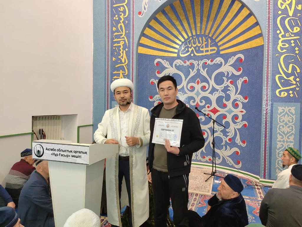 Ақтөбе облыстық орталық «Нұр Ғасыр» мешітінде Ақтөбе облысының бас имамы Серікжан Еншібайұлы жергілікті жамағат алдында кәсіпорындарға сертификаттарды табыстады. «Халал Дамудың» жергілікті өкілі Жарасхан Абдусаламов Ақтөбелік қасапшыларға қасапшылық сертификаты мен куәлігін табыстады.