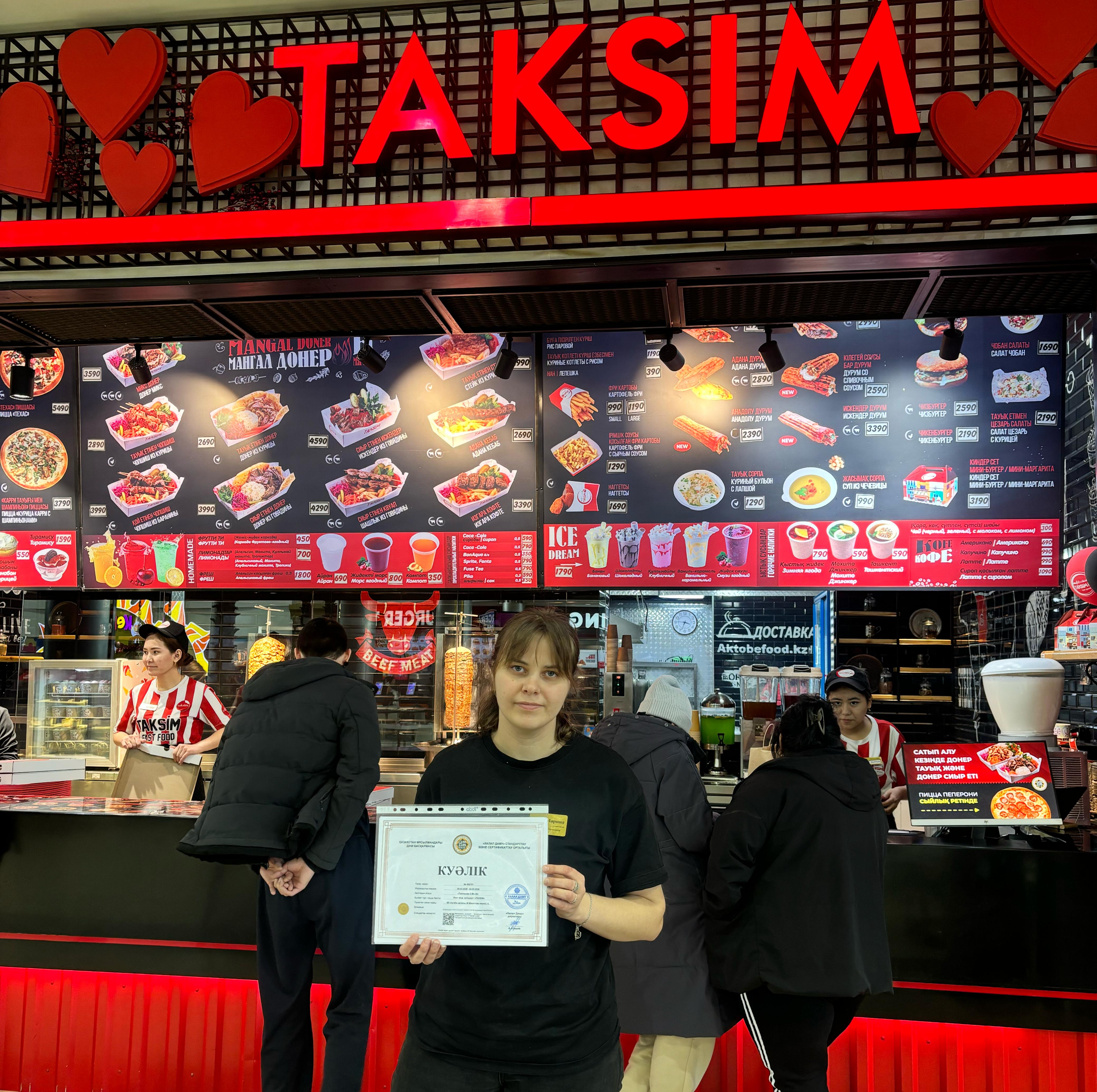 АҚТӨБЕ: «TAKSIM» ЖӘНЕ «WOK POINT» СЕРТИФИКАТЫ ЖАҢАРТЫЛДЫ