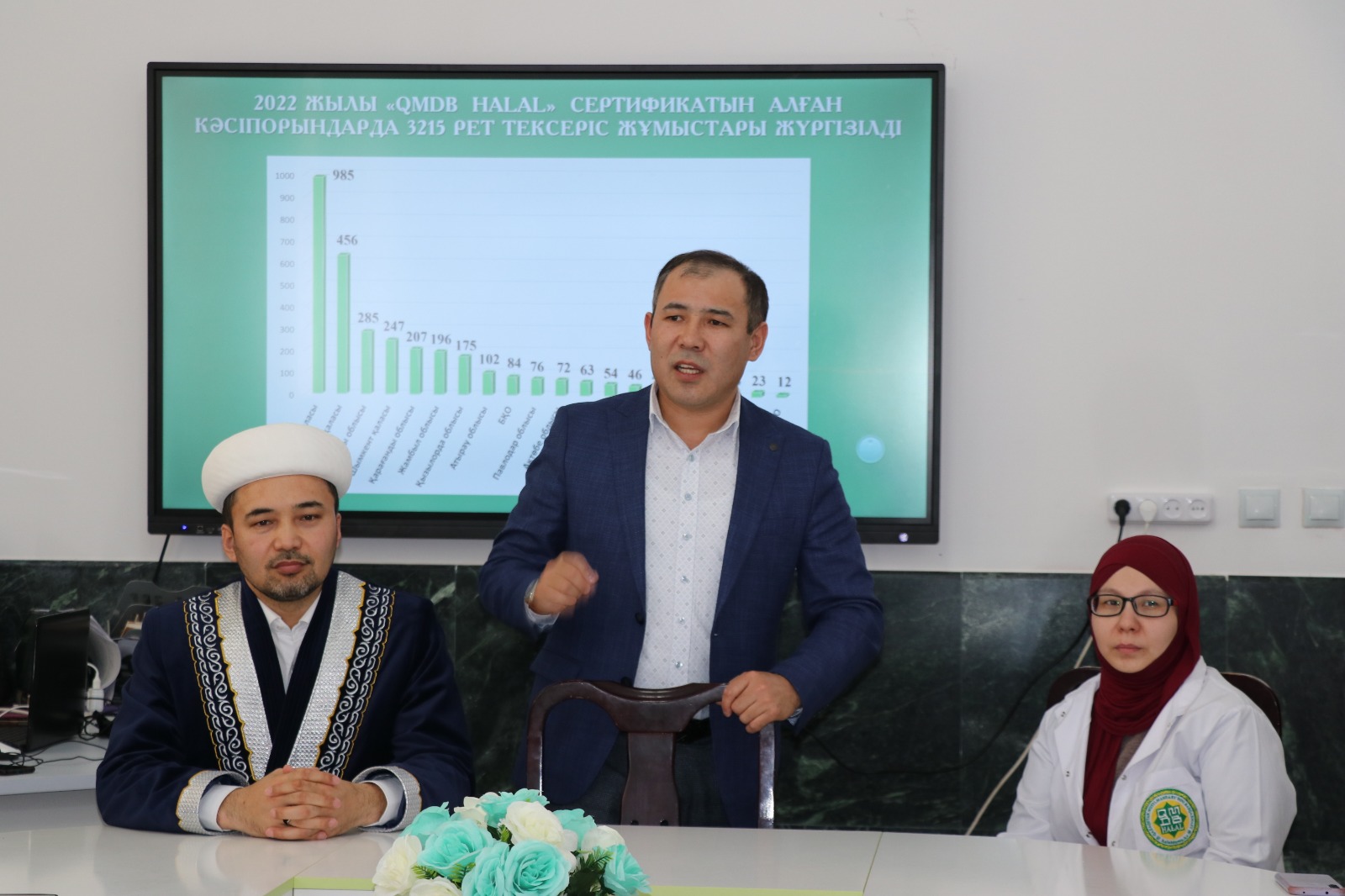Облыстың Бас имамы халал апталығы барысында өткізілген шаралар мен кездесуде «Құран Кәрімде: Алла Тағаланың ұлы сөздері қасиетті Құран Кәрімде адамзат баласына көл-көсір нығметтер беріп, жер бетіндегі халал мен харам нәрселердің ара жігін айырып көрсеткен. Алла пендесі үшін нені халал десе, ол сырда қайыр мен хикмет бар, ал нені харам десе, онда адам ғұмыры үшін ұшан-теңіз зиянның бар екендігі күмәнсіз. Осы турасында «Бақара» сүресінің 168-аятында былай деп түсіндіреді: «Әй, адамдар! Жер бетіндегі нәрселердің халал әрі тазасынан жеңдер!», «Мәида» сүресінің 88-аятында: «Алланың өздеріңе халал әрі таза етіп берген ризықтарынан жеңдер!» делінгенін айтып, халал өнімнің адам өміріндегі маңыздылығына тоқталды.