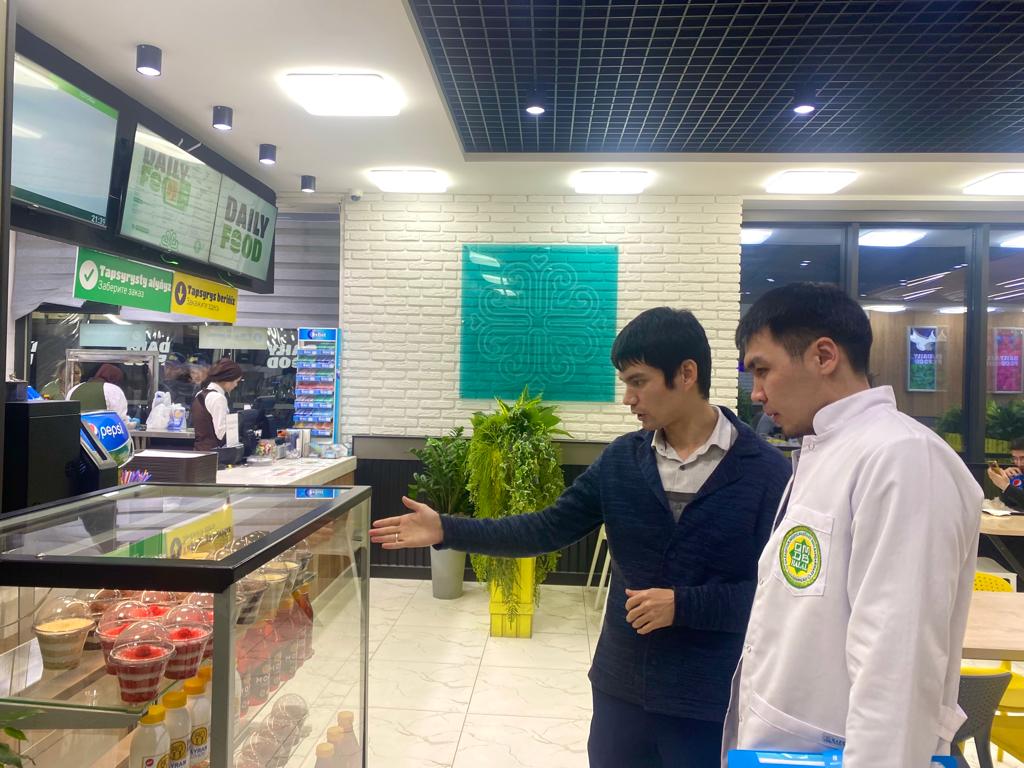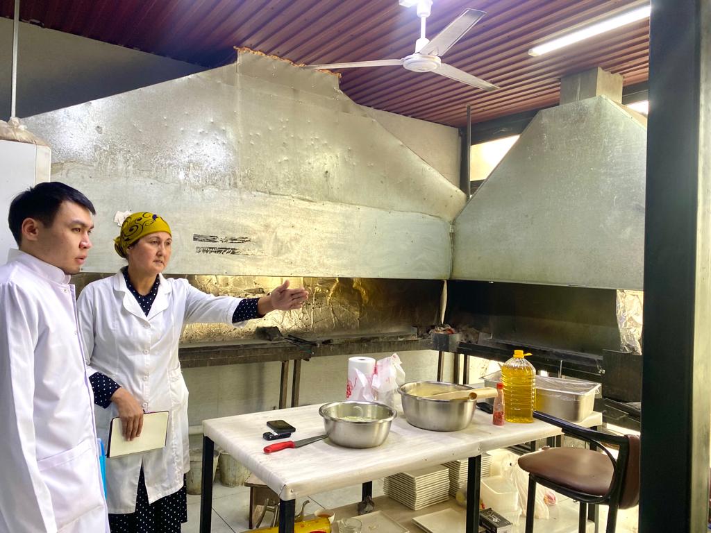 "Яссы құрылыс" ЖШС шұжық цехы, "Жеңіс" ЖК "Dorba" дәмханасы, "Айгерім" ЖК тәттілері, "Daily food" фаст фуд желісі, "Дилноза" ЖК "WOW PLOV" орталығы және "Кәусар" дәмханасы тексерілді.
