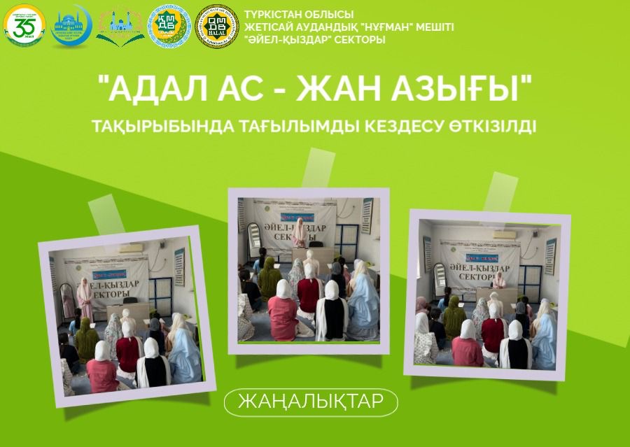 Түркістан облысы, Жетісай қаласындағы «Әт-Тақуа» мешітінде «Әйел-қыздар» секторының ұйымдастыруымен «Адал ас – жан азығы» атты рухани-танымдық кездесу өтті. Шараны сектор ұстазы М.Қалдыбаева ұйымдастырды.
