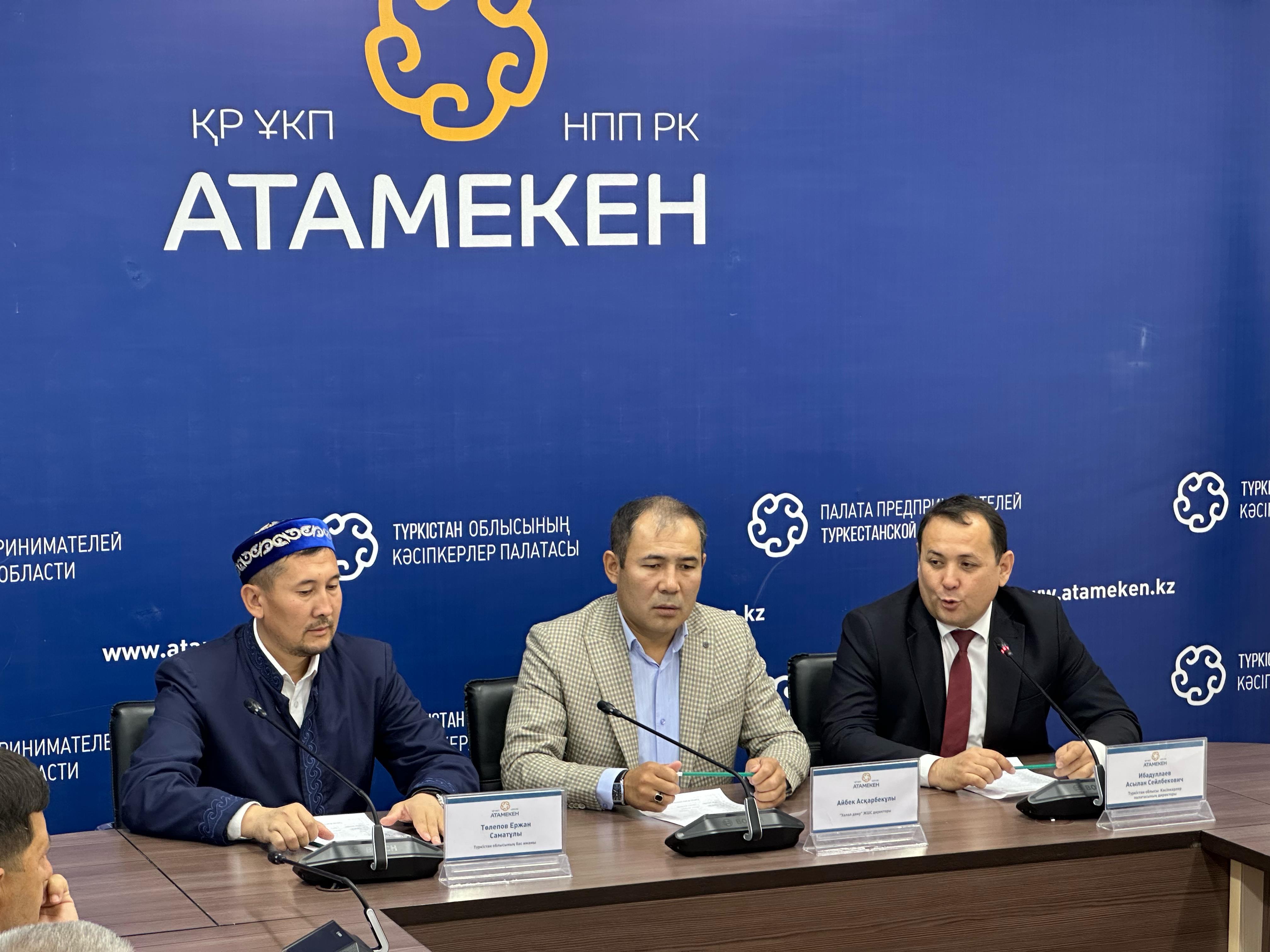 Түркістан облысы бойынша жергілікті кәсіпкерлерге арналған Атамекен Ұлттық Кәсіпкерлер палатасының жиыны өтті. Жиынға «Халал Даму» директоры Айбек Асқарбекұлы, Түркістан облысы кәсіпкерлер палатасының директоры Асылан Сейілбекұлы, облыстың бас имамы Ержан Саматұлы және де жергілікті кәсіпкерлер қатысты.