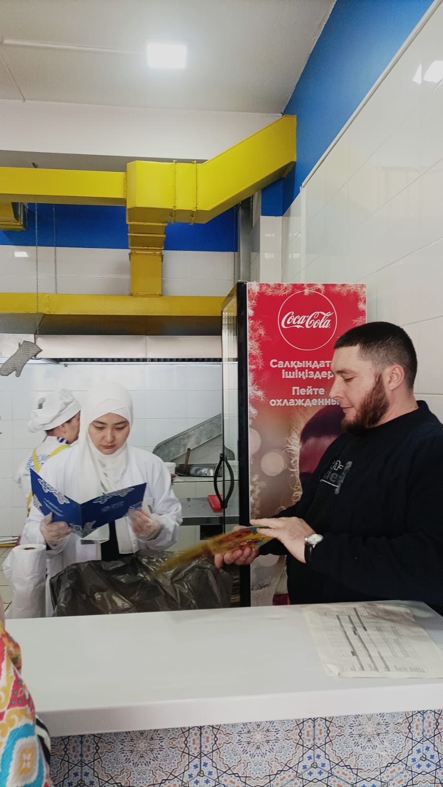 Кезекті айлық тексеріс барысында халал стандарты бойынша сертификаттаудан өтіп, халал сертификаты берілген «Waw Plov» тамақтану орны және «Halyk» кондитерлік өнімдерін өндіруші «Женис» ЖК кәсіпорны тексерілді.