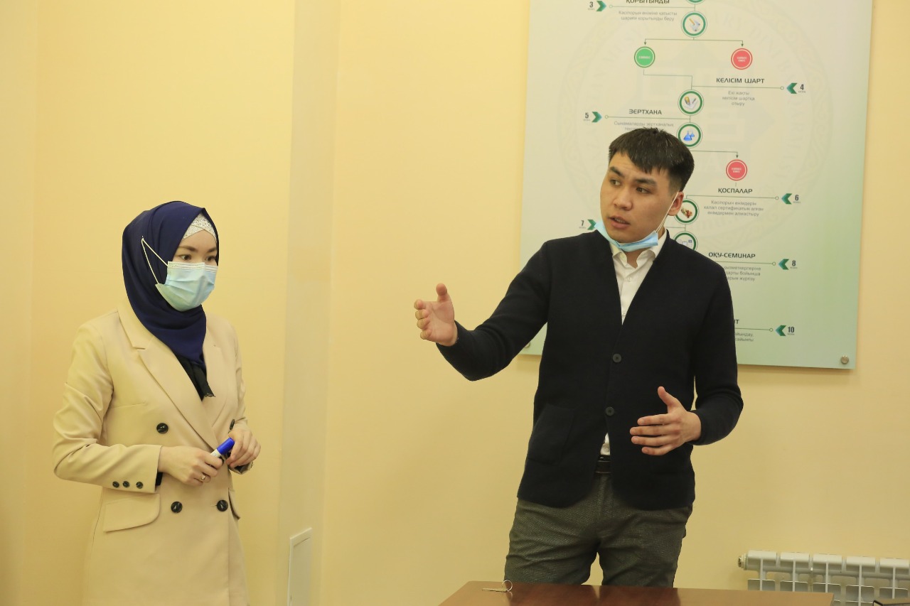 **«QMDB halal» оқыту және білім жетілдіру орталығында тұтынушылар мешіт жамағатының қатысуымен оқыту семинары өткізілді. Семинарды «Халал Даму» директоры Айбек Асқарбекұлы, технолог мамандар Данияр Сафиев пен Арай Бақытқызы жүргізді.** Оқыту барысында шариғатымыздағы халалдың орны мен маңызы жөнінде түсіндірген Айбек Асқарбекұлы: «Алла Тағаланың ұлы сөздері қасиетті Құран Кәрімде адамзат баласына көл-көсір нығметтер беріп, жер бетіндегі халал мен харам нәрселердің ара жігін айырып көрсеткен. Алла пендесі үшін нені халал десе, ол сырда қайыр мен хикмет бар, ал нені харам десе, онда адам ғұмыры үшін ұшан-теңіз зиянның бар екендігі күмәнсіз. Осы турасында "Бақара" сүресінің 168-аятында былай деп түсіндіреді: «Әй, адамдар! Жер бетіндегі нәрселердің халал әрі тазасынан жеңдер!», «Мәида» сүресінің 88-аятында: «Аллаһтың өздеріңе халал әрі таза етіп берген ризықтарынан жеңдер!» делінген», – деп халалдың салмағы мен сұрауы жөнінде мағұлмат берді. Технолог мамандар халал өнімдер технологиясы мен стандарт талаптары, зертханалық тексерістің маңыздылығы, тағамдық қоспалардың өндірісі жөнінде бағамдады. Сонымен қатар, қатысушылар тарапынан қойылған сұрақтарға жауап берілді. Естеріңізге сала кетейік, биыл ҚМДБ ғимараты жанынан «QMDB halal» оқу және білім жетілдіру орталығы іске қосылған болатын. Оқу орталығында білім алуға ниет білдірген қарапайым тұтынушылардан бастап, медресе,мешіт, оқу орындары шәкірттеріне, мешіт имамдары мен ұстаздарға, сертификатталған кәсіпорын қызметкерлеріне, қасапшыларға жүйелі түрде оқу-семинар шаралары жүргізіліп тұрады.