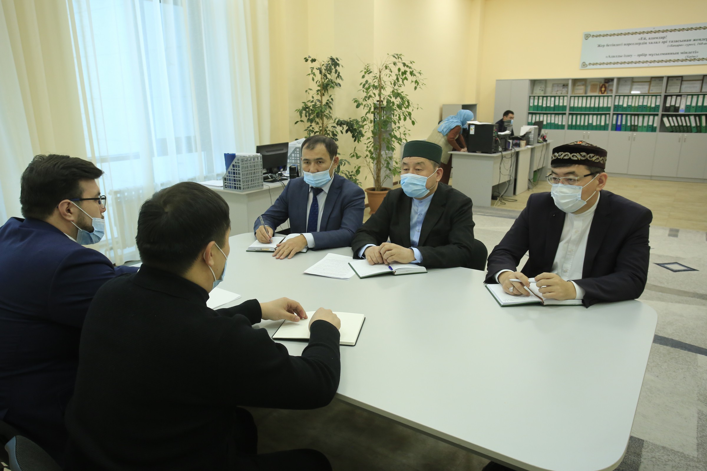 **Бүгін, 21 желтоқсан Қазақстан мұсылмандары діни басқармасында ҚР үкіметі анықтаған сәйкестікті бағалау аясындағы аккредиттеу жөніндегі жалғыз ұлттық орган Ұлттық аккредиттеу орталығының жауапты қызметкерлерімен кездесу өтіп, «Халал» өнімдерін сертификаттаумен айналысатын мекемелерді аккредиттеуге қатысты бірқатар мәселелер талқыланды.** Аталмыш кездесуге Бас мүфтидің кеңесшісі Балтабай Уәжитұлы, ҚМДБ аппарат басшысы Ғылымбек Мәжиев, ҰАО директорының орынбасары Ернар Асқарұлы, департамент директоры Алмат Орынғалиұлы және «Халал Даму» ЖШС директоры Айбек Асқарбекұлы, жауапты мамандар қатысты. Кездесуде алдымен Елбасы Нұрсұлтан Назарбаевтың «Жол картасы» бағдарламасында көрсетілген отандық ауылшаруашылық өнімдерін Парсы шығанағы елдеріне «HALAL» таңбасымен экспорттауды іске асыру мақсатында, осы саладағы бірден бір өкілетті орган ретінде «Халал Даму» стандарттау және сертификаттау ұйымын халықаралық ESMA-дан (Біріккен Араб Әмірліктерінің метрология және стандарттау басқармасы) аккредиттеуден өткізу мәселесі жан-жақты талқыланды. Жалпы, ағымдағы жылы аккредиттеу жұмыстарын жүйелендіру мақсатында «Халал Даму» ЖШС бірқатар шараларды жүзеге асырып, халықаралық ESMA ұйымының талаптарына сәйкестендіру бойынша жұмыстар жасағанын айта кеткен жөн. Кездесу соңында күн тәртібіне ұсынылған мәселелердің маңыздығын мойындай келіп, ҰАО мен «Халал Даму» ЖШС алдағы жылға жоспарланған ESMA-дан аккредиттеуден өтумен байланысты шараларды және оған қажетті құжаттарды ретке келтіруді, сондай-ақ «халал» индустриясын одан әрі дамыту, сапасын арттыру жұмыстарын әріптестік деңгейде келісе, бірлесе отырып атқаруға уағдаласты.
